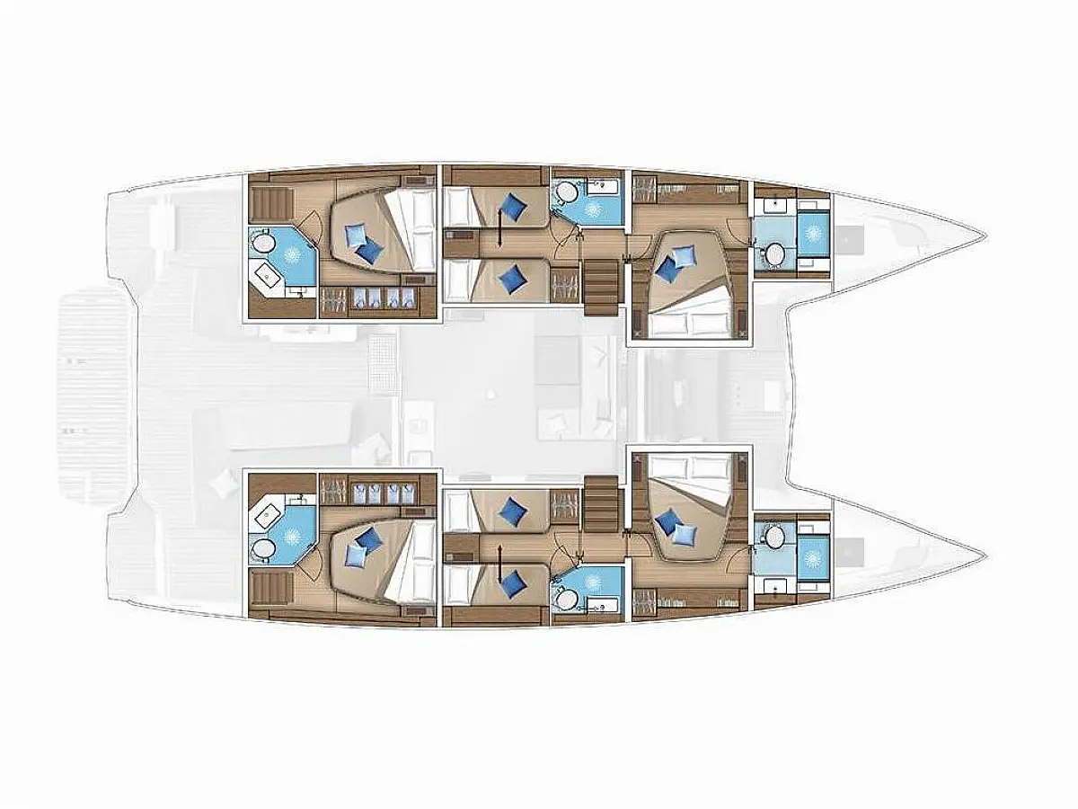 5 (4 double cabins & 1 twin convertible to double all with en-suite facilities for up to 10 guests)