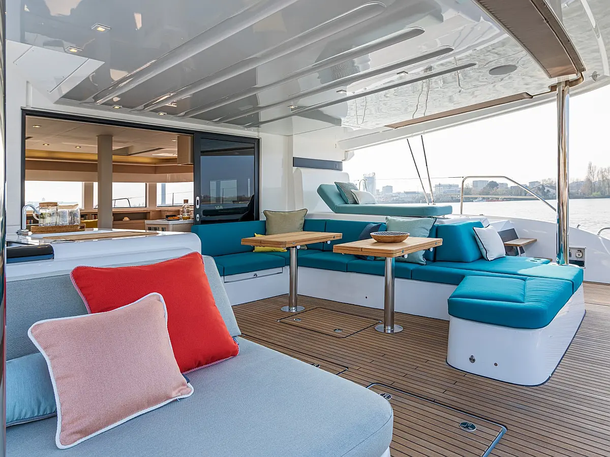 Cockpit cushions, Dinghy, Air condition, Refrigerator, Electric toilet, Coffee maker, Generator, Hydraulic gangway, Ice maker, Inverter, Water maker, Wi-Fi & Internet