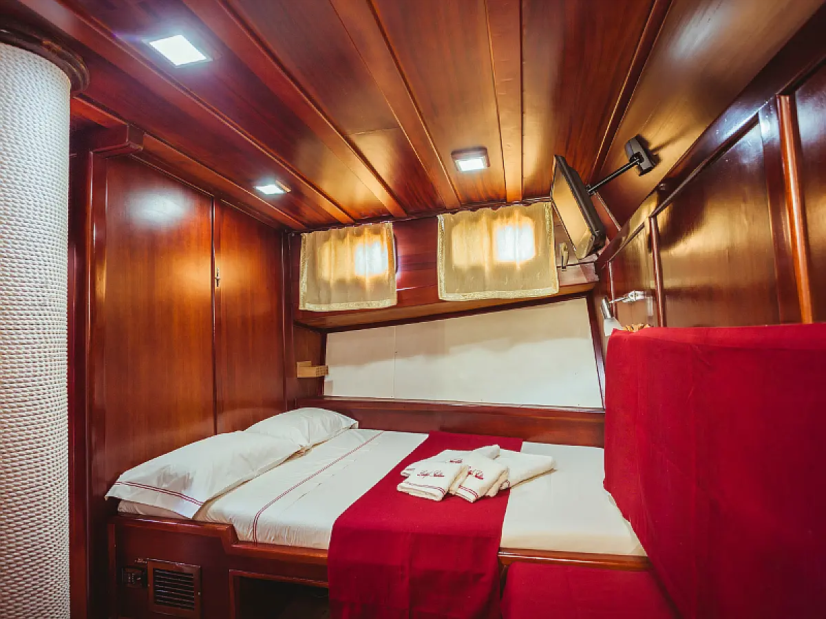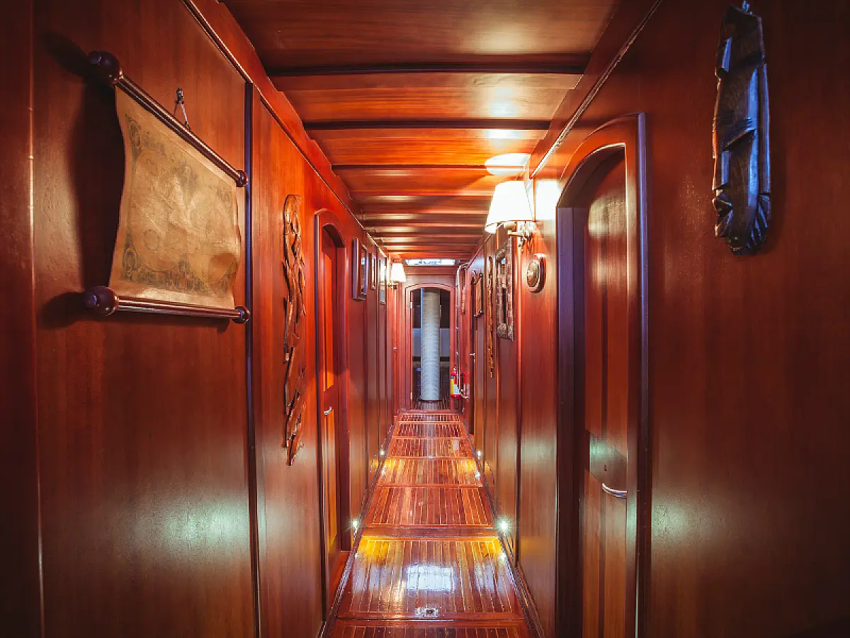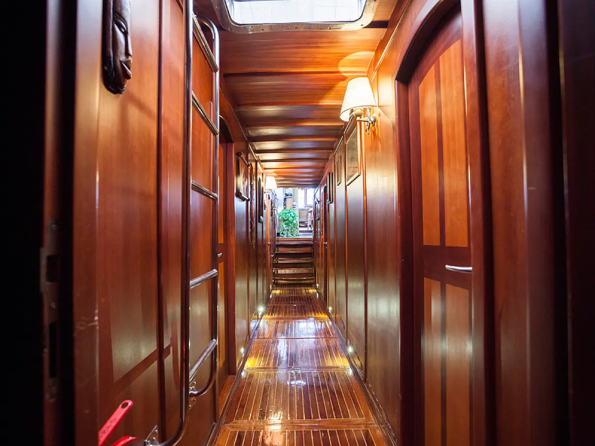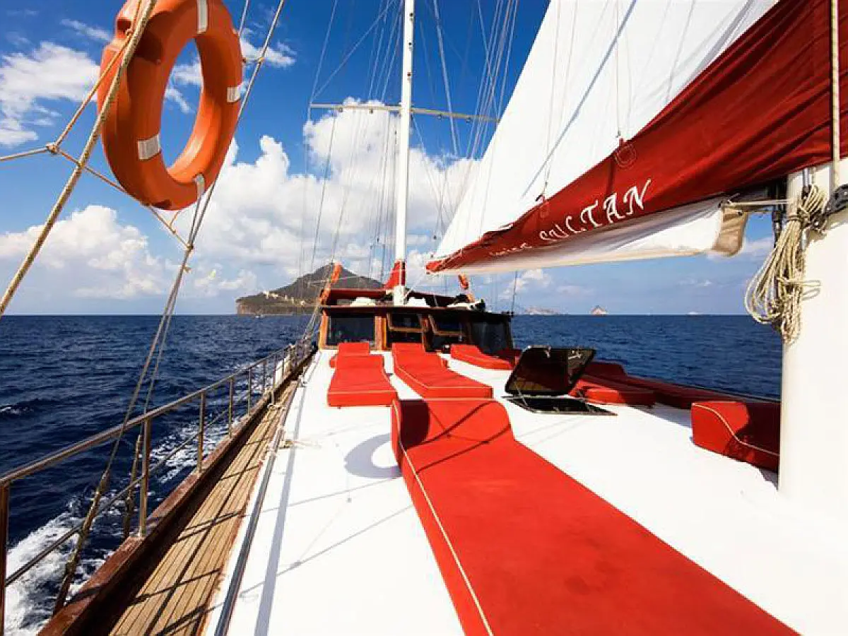 79 ft Length 5 Cabins 10 Max Guests 5 Heads Technical Specifications Draught: 8 ft Engine: N/A Water capacity: N/A Main sail: Semi full batten Displacement: N/A Fuel capacity: N/A Beam: 21 ft Genoa: Furling Equipment Comfort: Wi-Fi & Internet, Generator, Air condition, Dinghy, Water maker Entertainment: Diving equipment Documents Download Brochure
