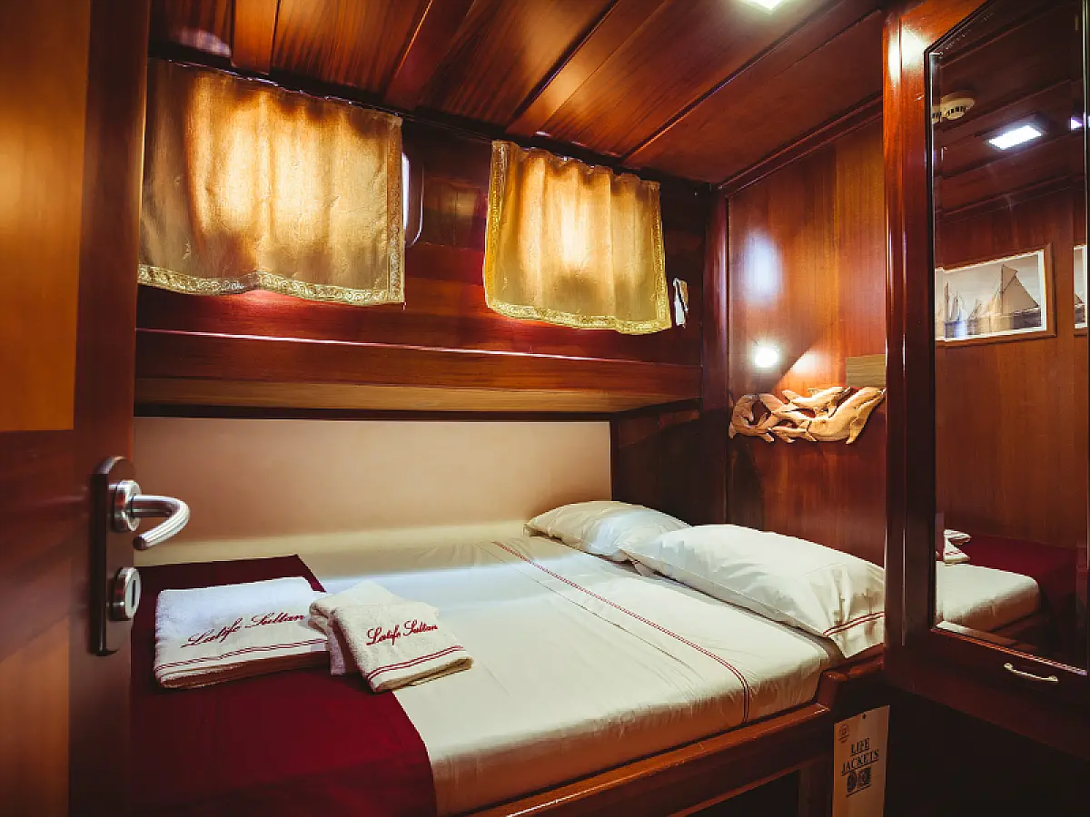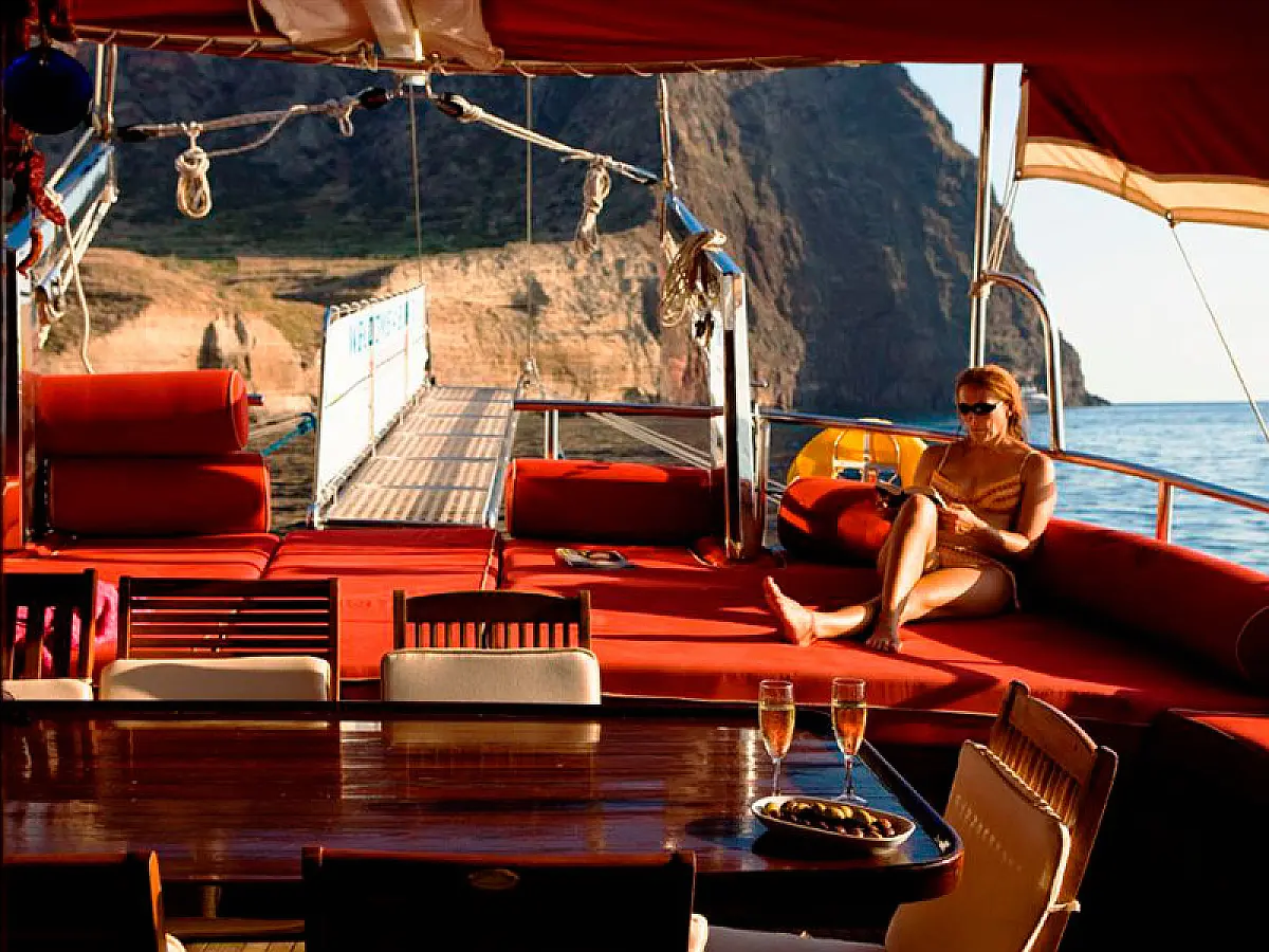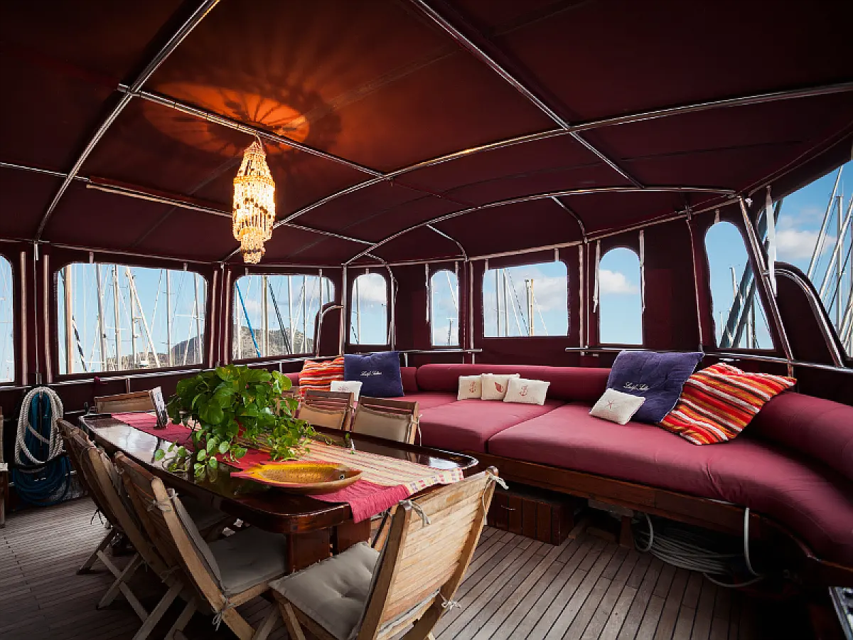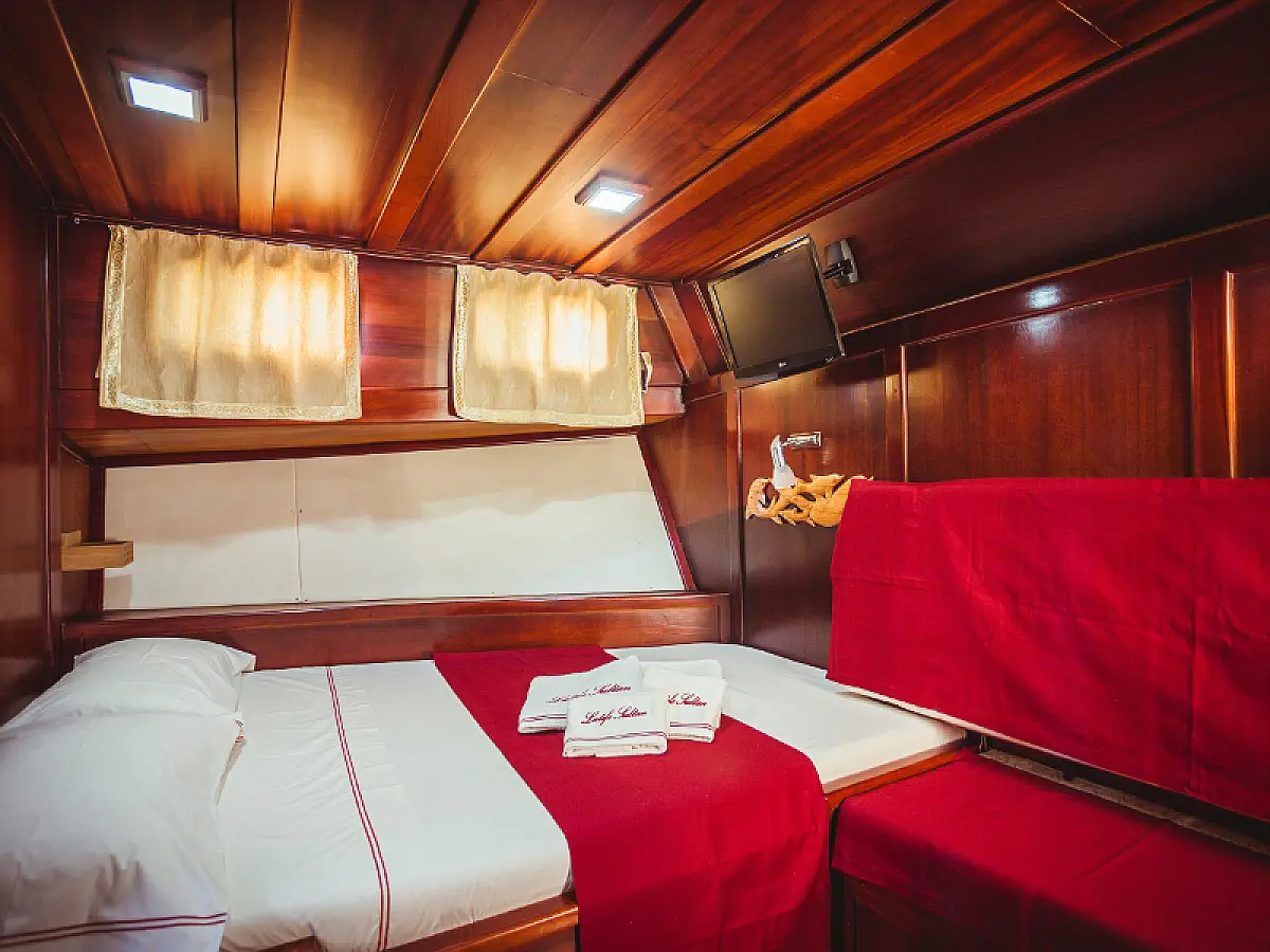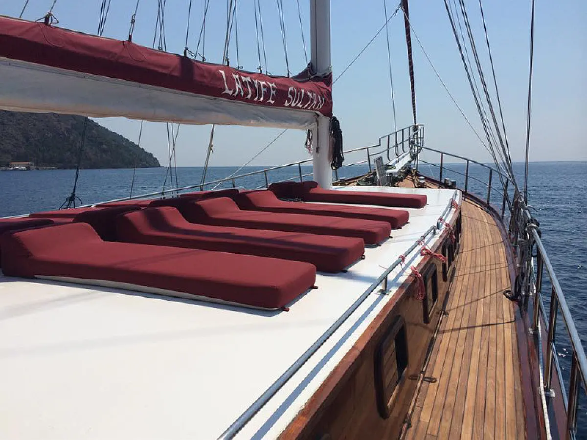 79 ft Length 5 Cabins 10 Max Guests 5 Heads Technical Specifications Draught: 8 ft Engine: N/A Water capacity: N/A Main sail: Semi full batten Displacement: N/A Fuel capacity: N/A Beam: 21 ft Genoa: Furling Equipment Comfort: Wi-Fi & Internet, Generator, Air condition, Dinghy, Water maker Entertainment: Diving equipment Documents Download Brochure