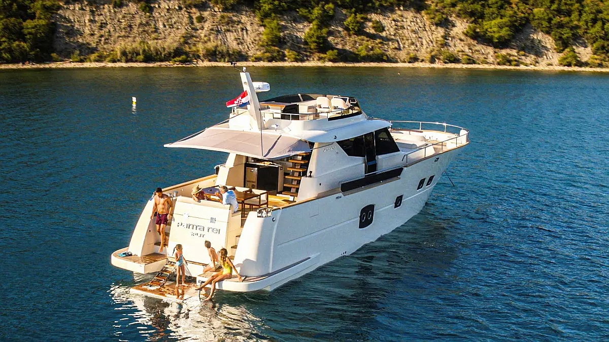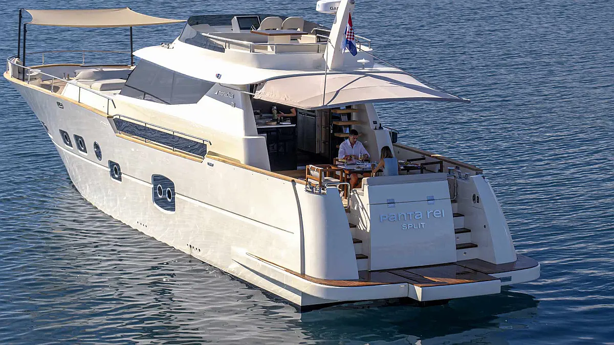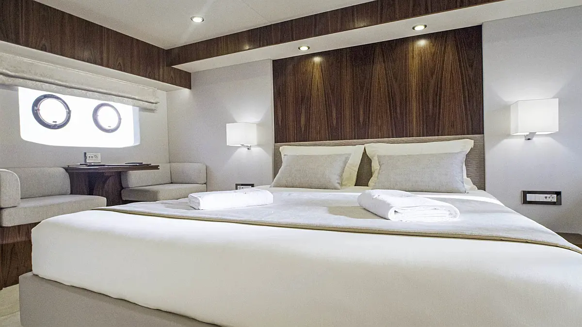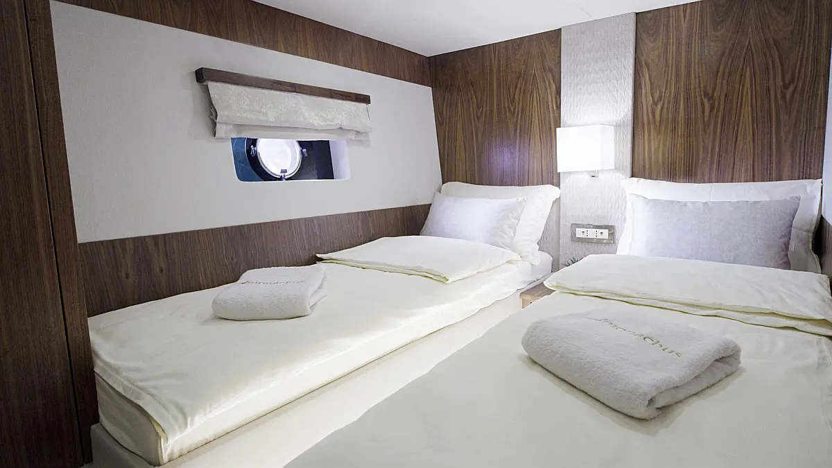 69 ft Length 4 Cabins 8 Max Guests 4 Heads Technical Specifications Draught: 4 ft Engine: N/A Water capacity: 1200.00 l Main sail: None Displacement: N/A Fuel capacity: 3600.00 l Beam: 19 ft Genoa: None Equipment Entertainment: Stand up paddle Comfort: Dinghy, Air condition, Swimming platform, Wi-Fi & Internet Documents Download Brochure Download Brochure