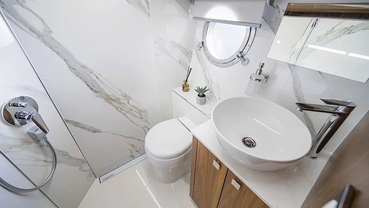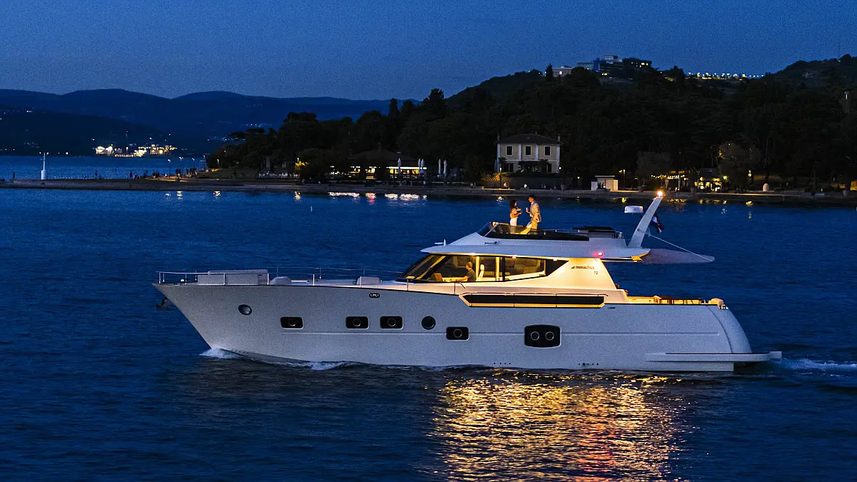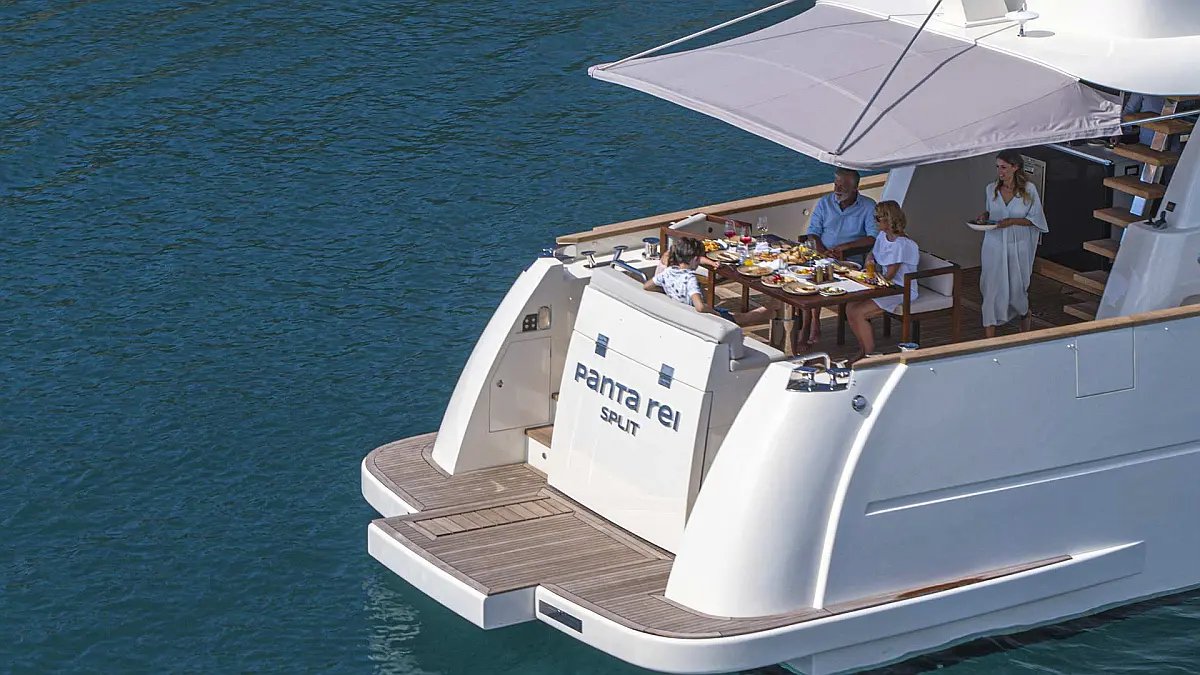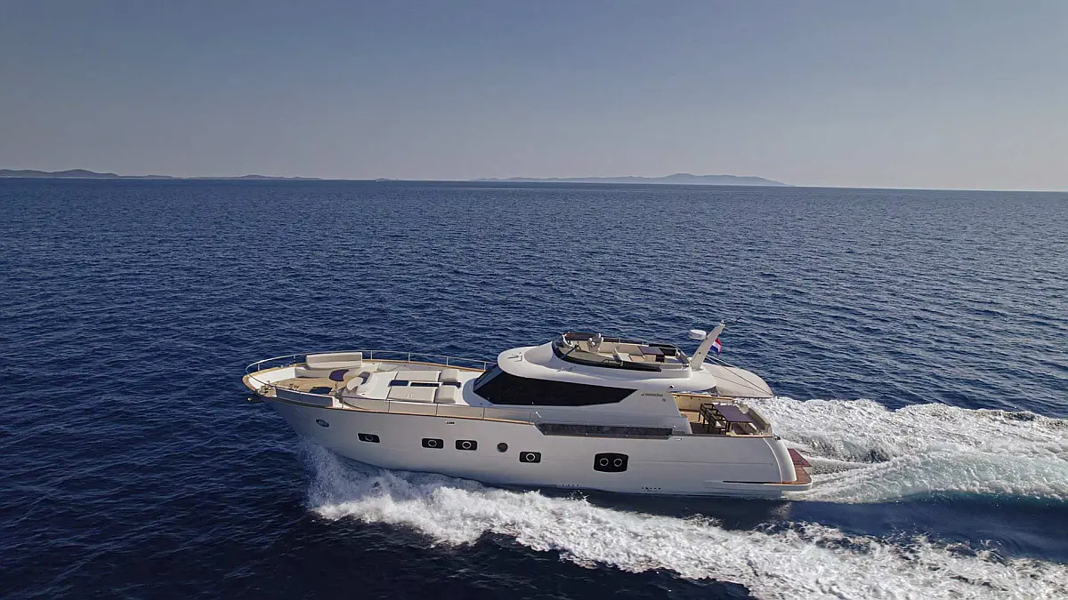 69 ft Length 4 Cabins 8 Max Guests 4 Heads Technical Specifications Draught: 4 ft Engine: N/A Water capacity: 1200.00 l Main sail: None Displacement: N/A Fuel capacity: 3600.00 l Beam: 19 ft Genoa: None Equipment Entertainment: Stand up paddle Comfort: Dinghy, Air condition, Swimming platform, Wi-Fi & Internet Documents Download Brochure Download Brochure