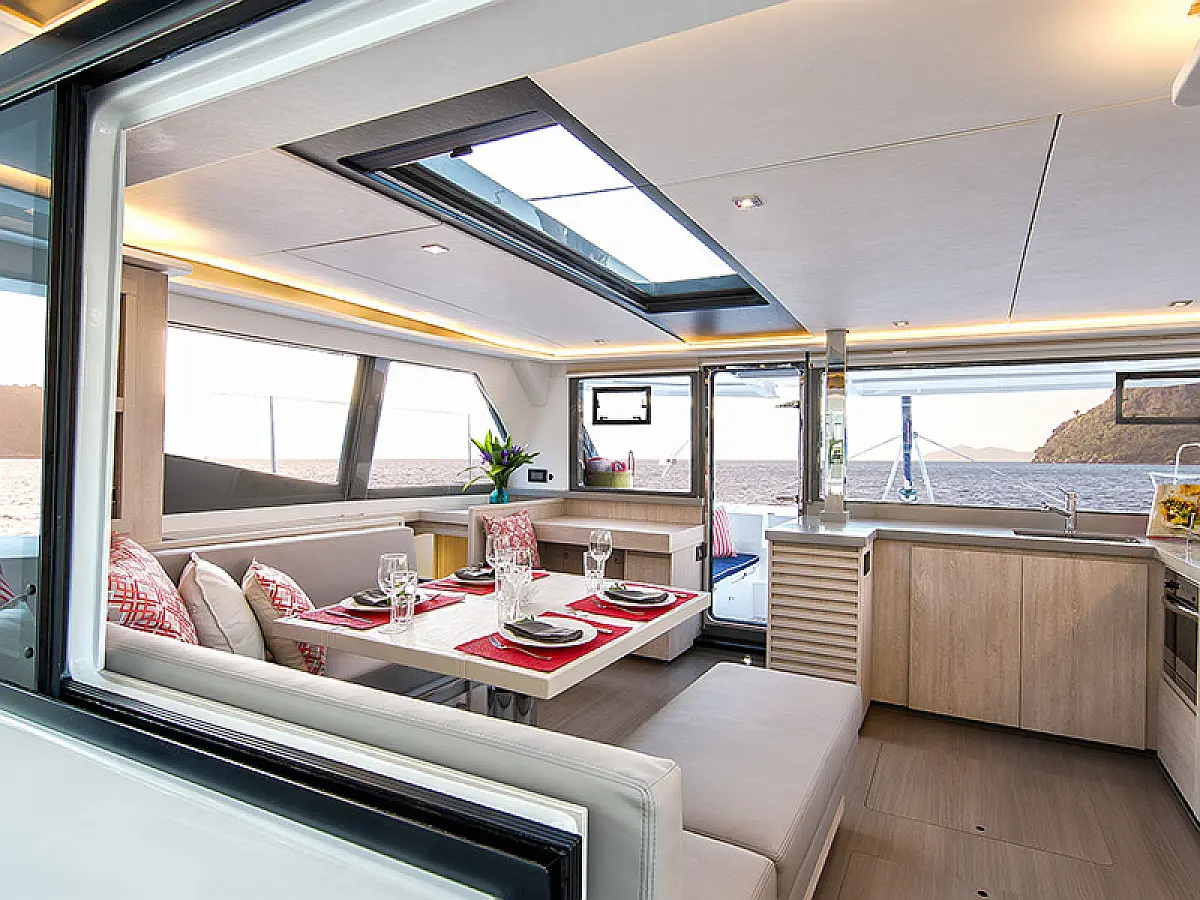 Dinghy, Inverter, Air condition, Solar Panels, Refrigerator, Electric toilet, Generator, Water maker, Outboard engine