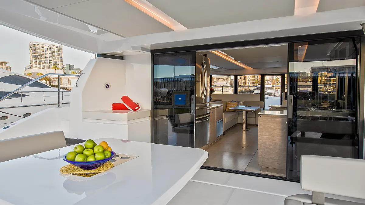 Bimini, Barbecue grill in cockpit, Cockpit speakers, Solar Panels, Refrigerator