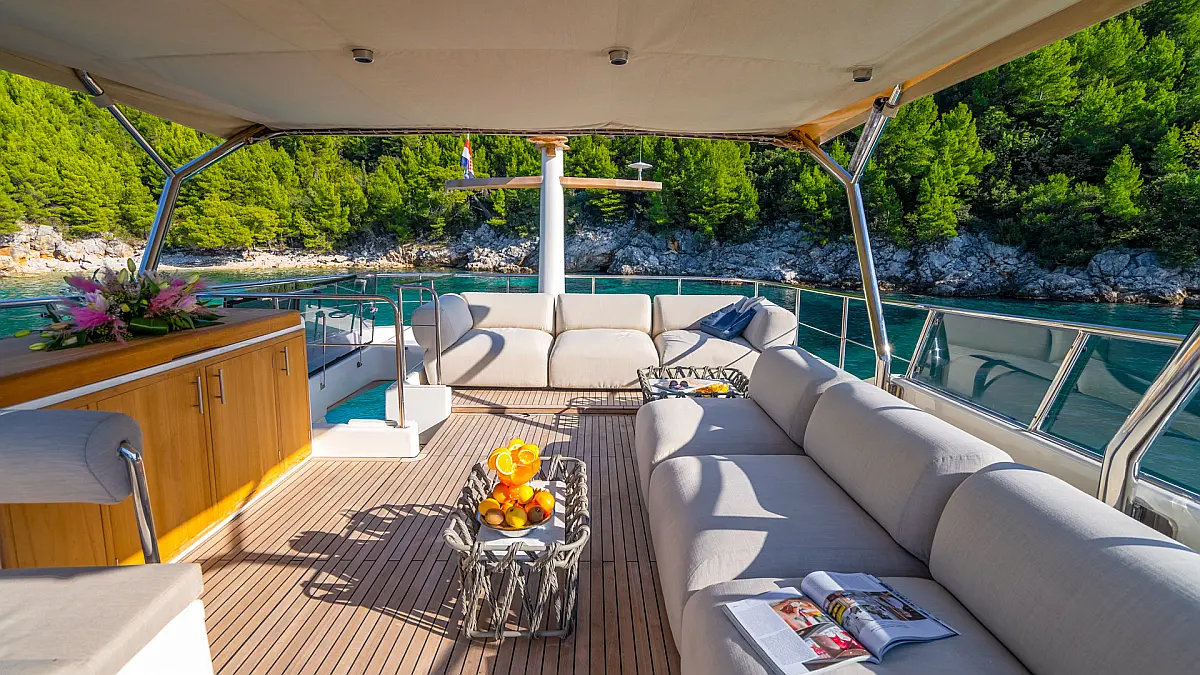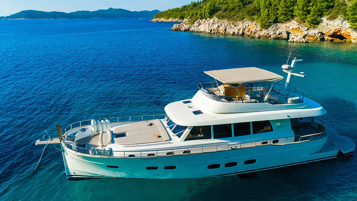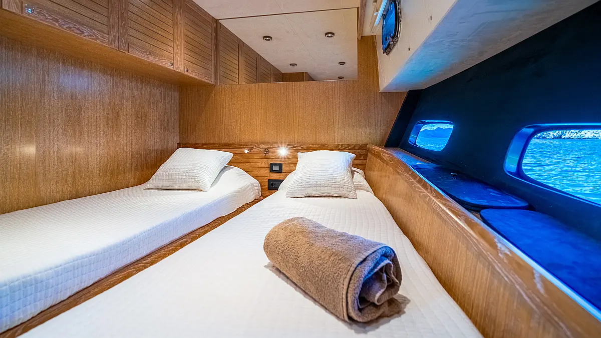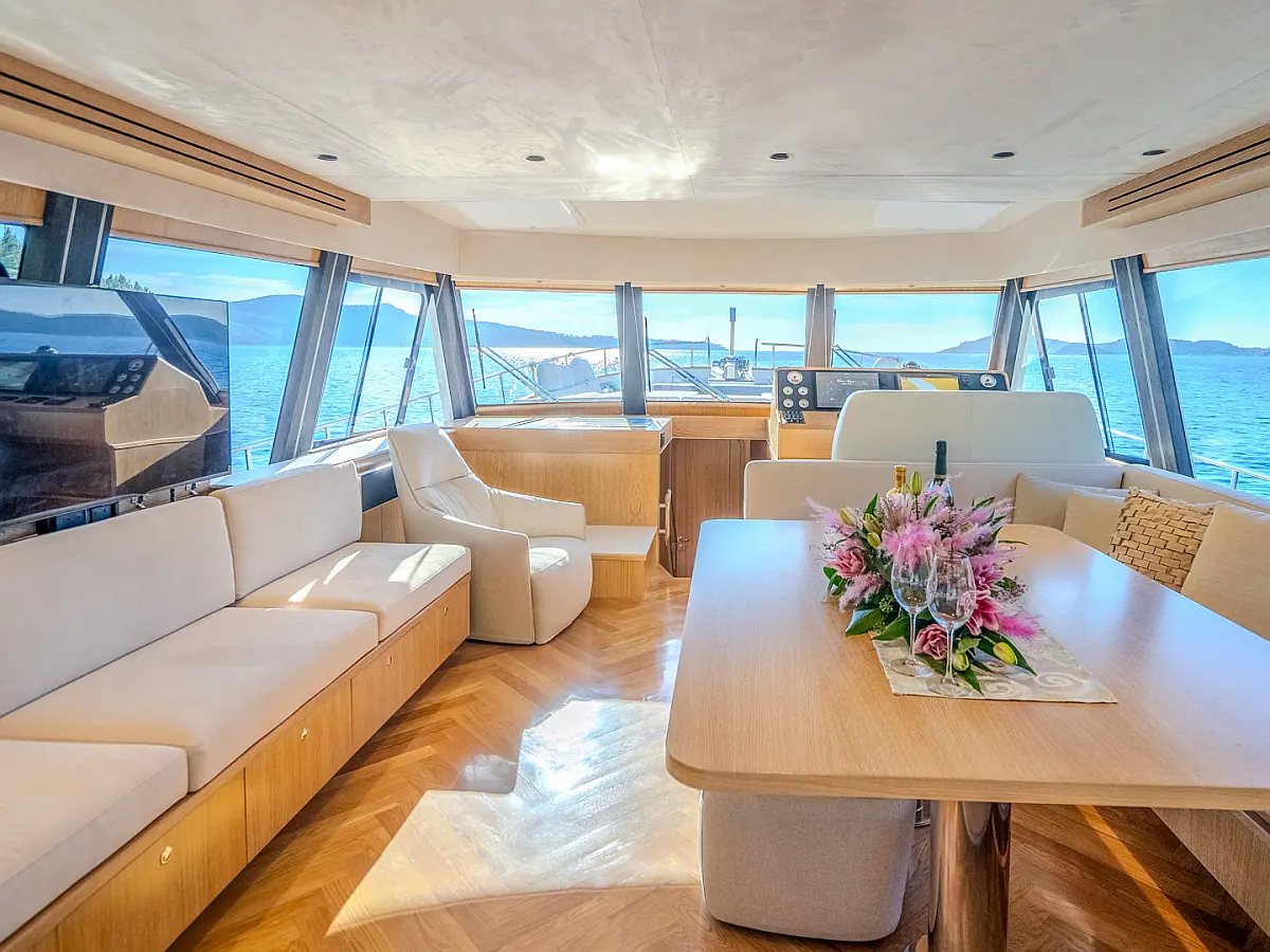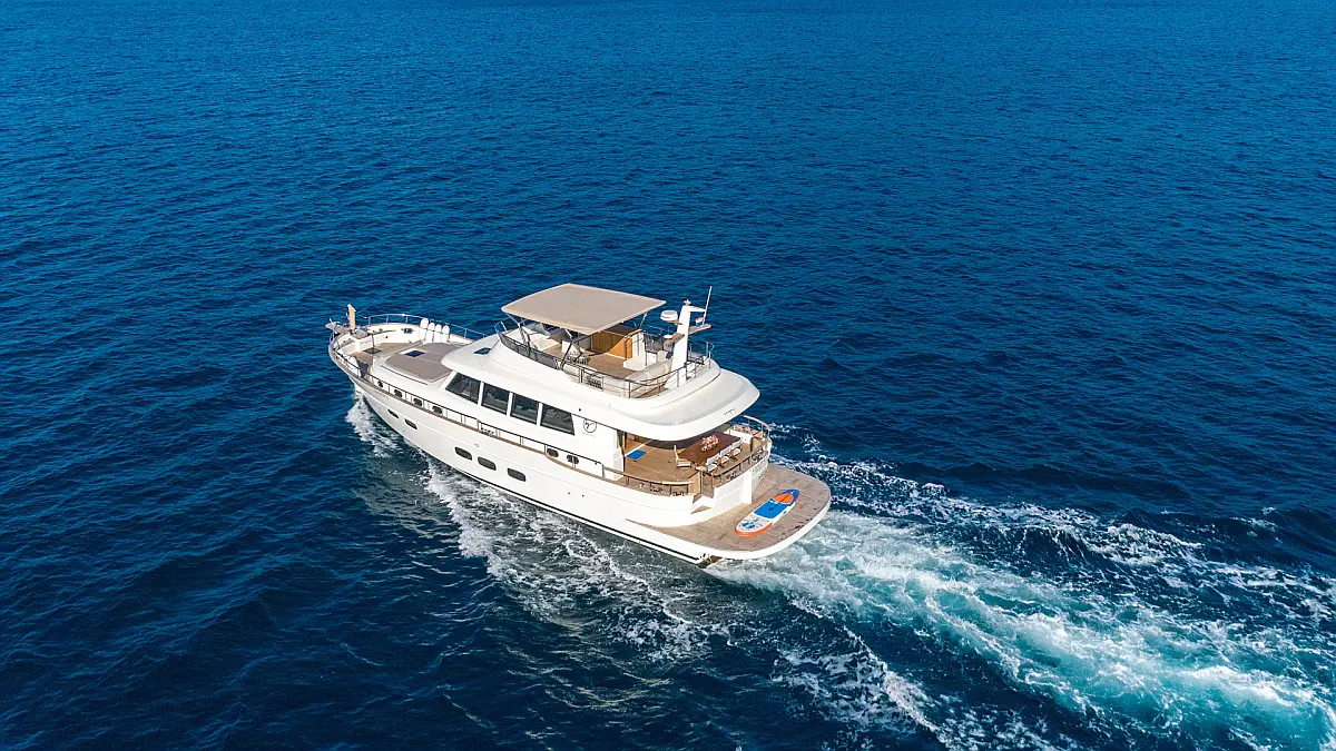 70 ft Length 3 Cabins 6 Max Guests 3 Heads Technical Specifications Draught: 5 ft Engine: N/A Water capacity: N/A Main sail: None Displacement: N/A Fuel capacity: N/A Beam: 19 ft Genoa: None Equipment Entertainment: Stand up paddle, TV Comfort: Dinghy, Flybridge Documents Download Brochure Download Brochure