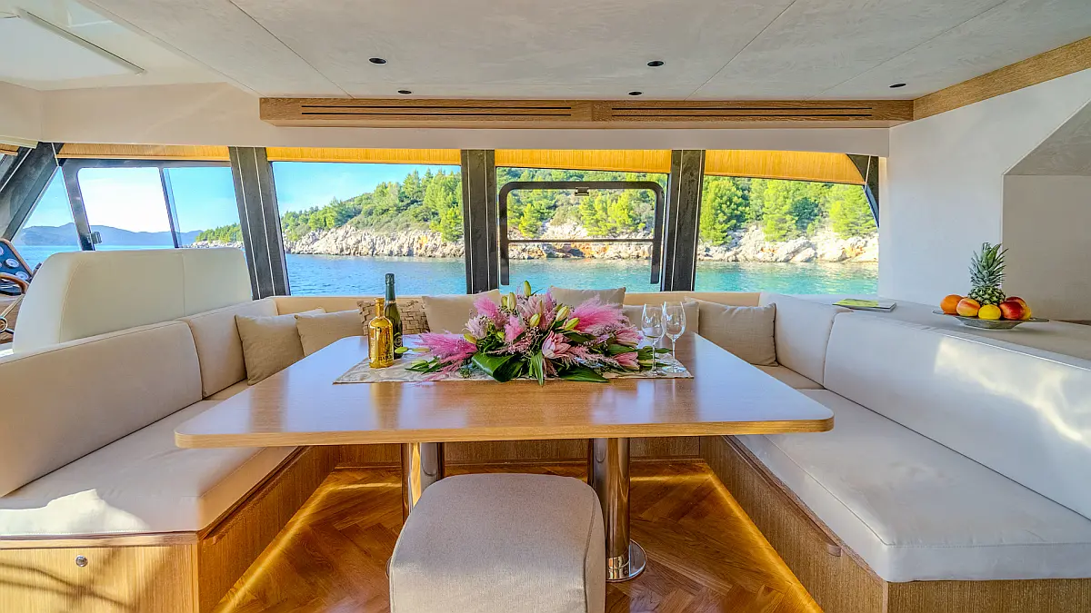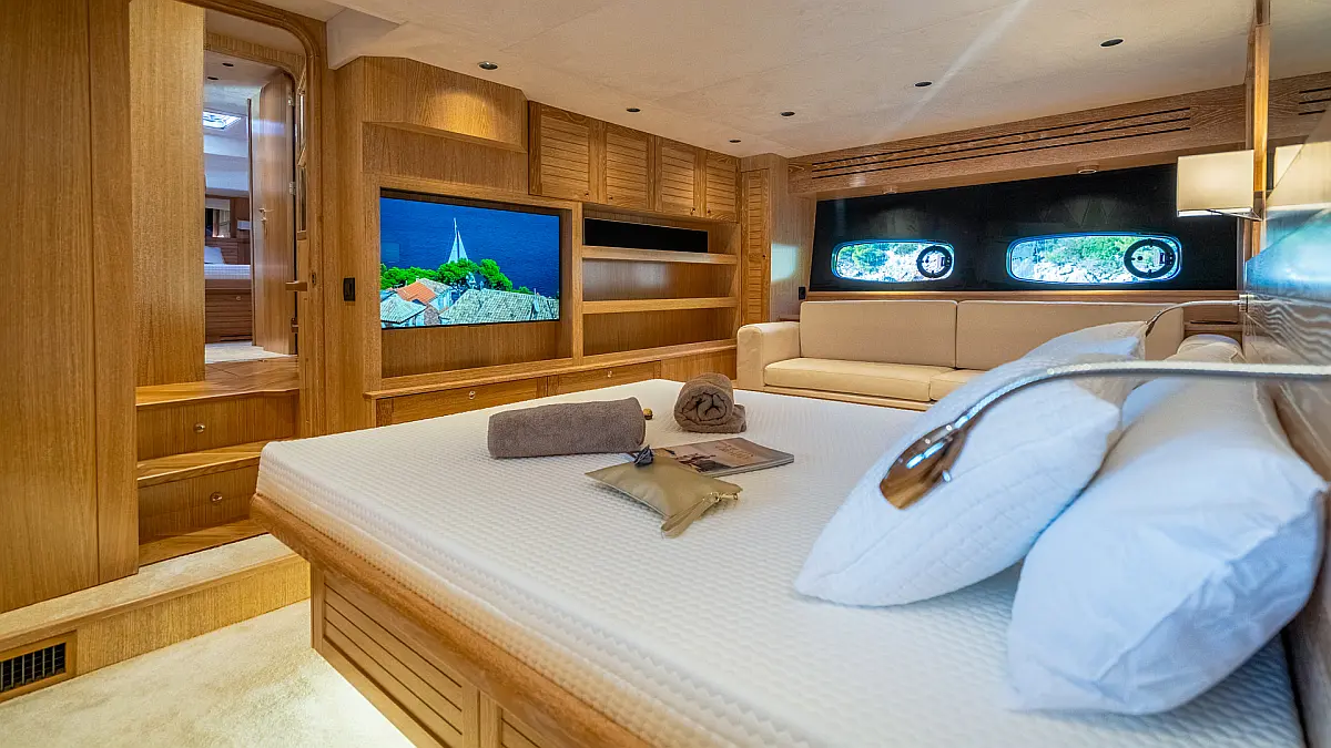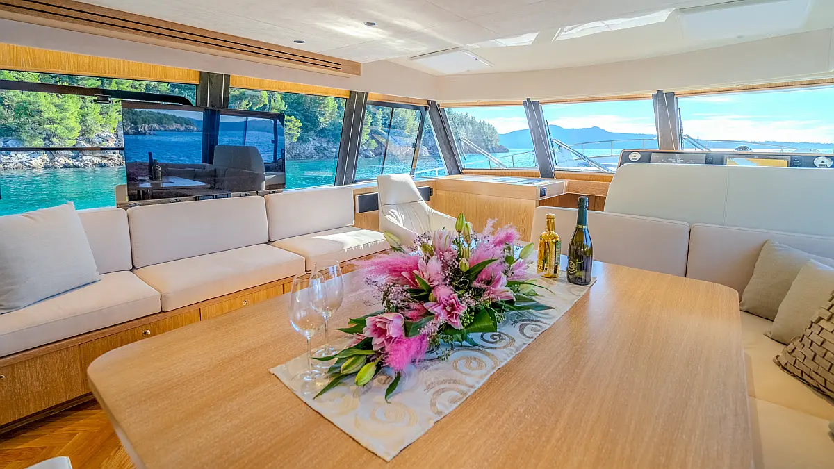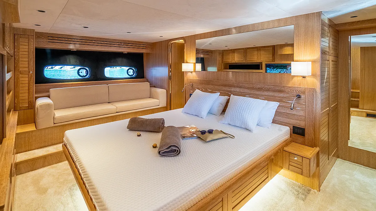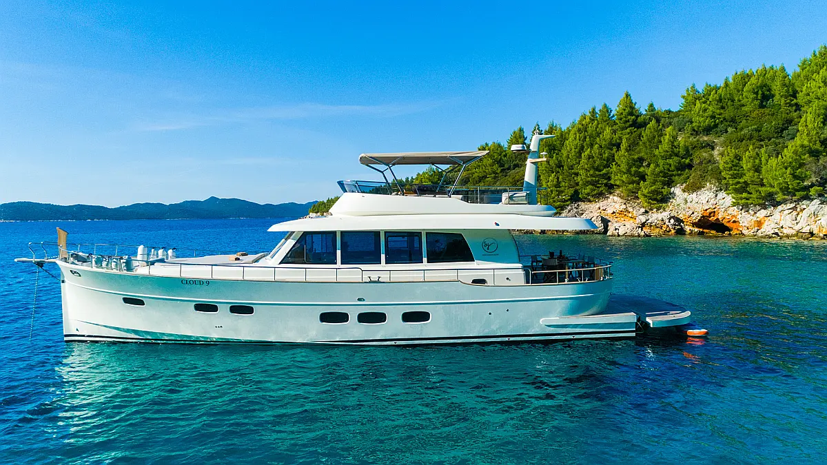 70 ft Length 3 Cabins 6 Max Guests 3 Heads Technical Specifications Draught: 5 ft Engine: N/A Water capacity: N/A Main sail: None Displacement: N/A Fuel capacity: N/A Beam: 19 ft Genoa: None Equipment Entertainment: Stand up paddle, TV Comfort: Dinghy, Flybridge Documents Download Brochure Download Brochure