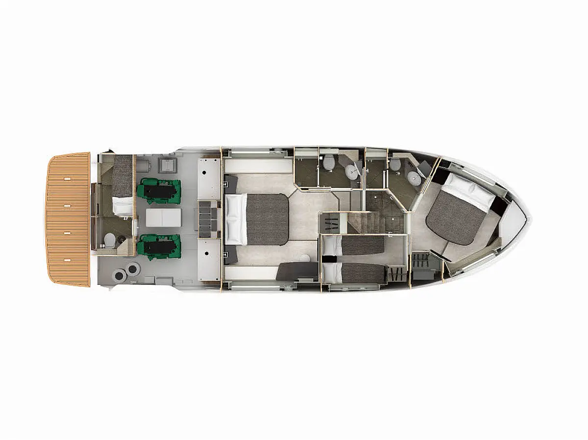 Flybridge, Washer/Dryer, Dishwasher, Electric toilet, Refrigerator, Air condition, Inverter, Water maker, Generator, Ice maker, Hydraulic gangway, Wi-Fi & Internet