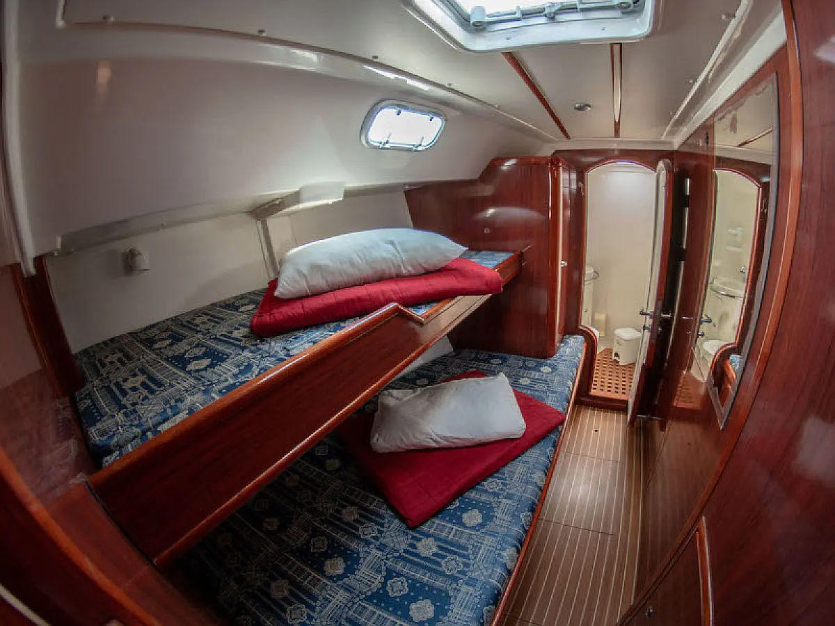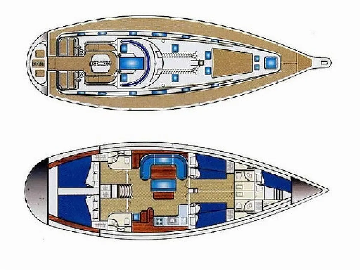 Sprayhood, Bimini, Cockpit speakers, Inverter, Solar Panels, Generator, Dinghy, Teak deck, Heating, Refrigerator, Air condition
