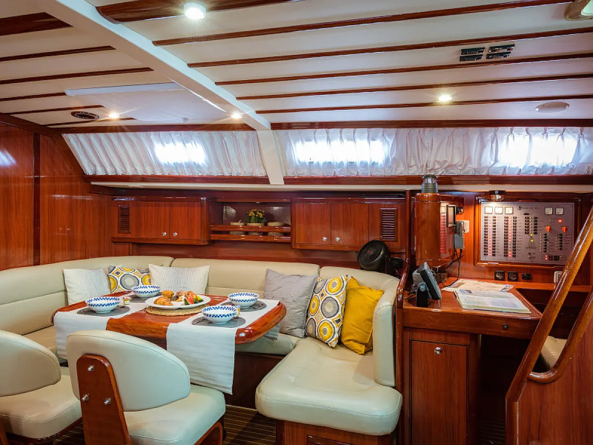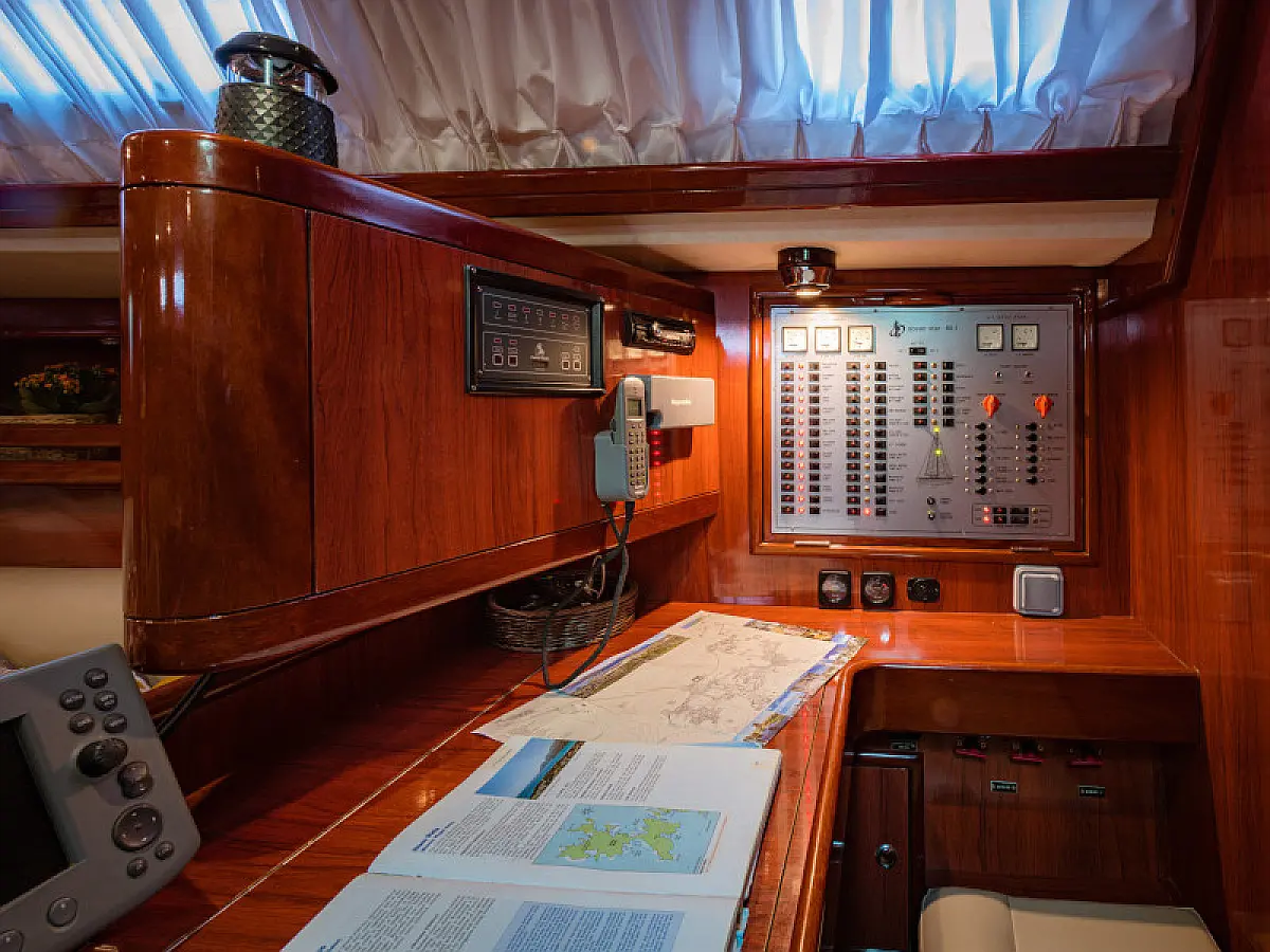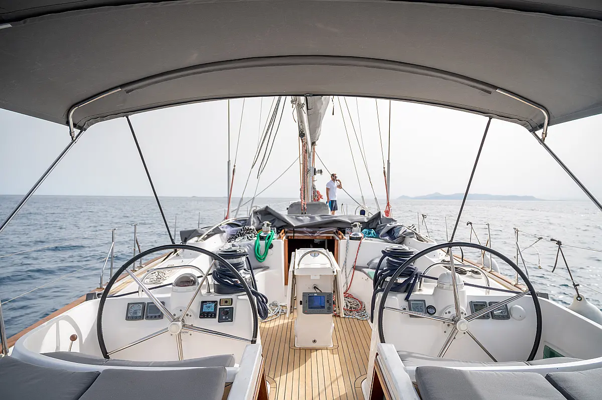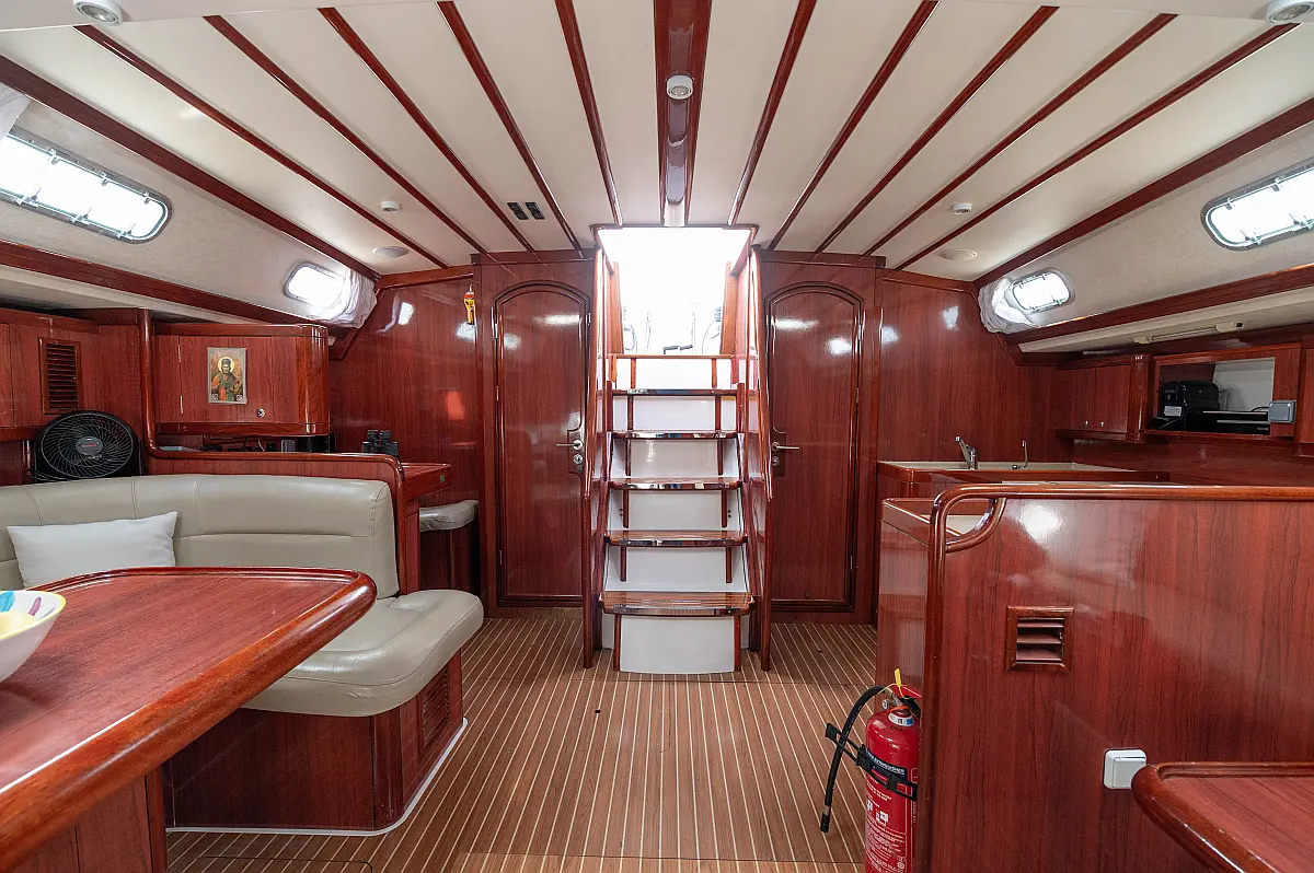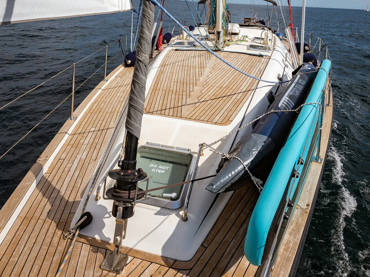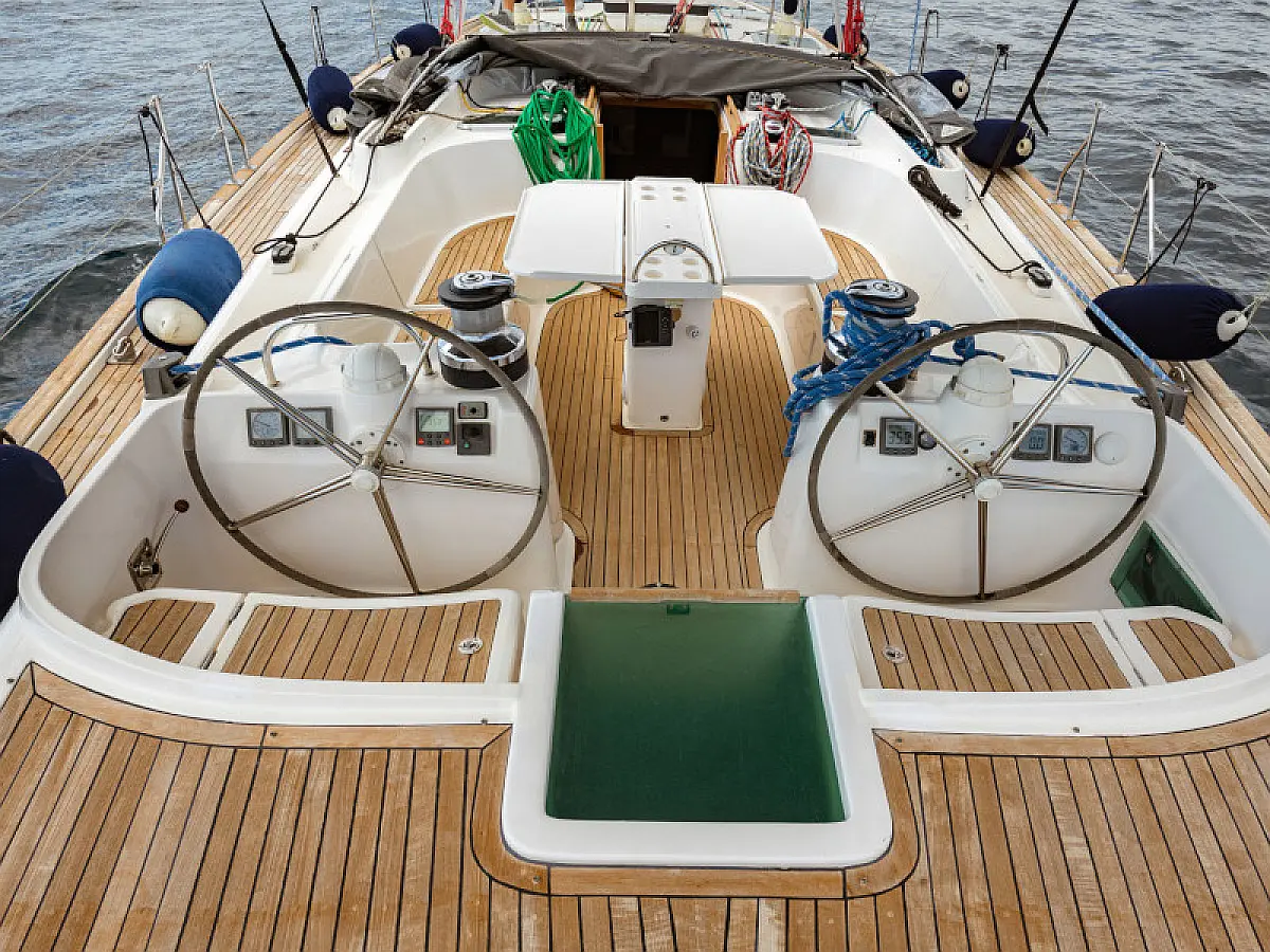 Generator, Air condition, Teak deck, Ice maker, Sprayhood, Refrigerator, Cockpit speakers, Dinghy, Bimini, Outboard engine, Water maker