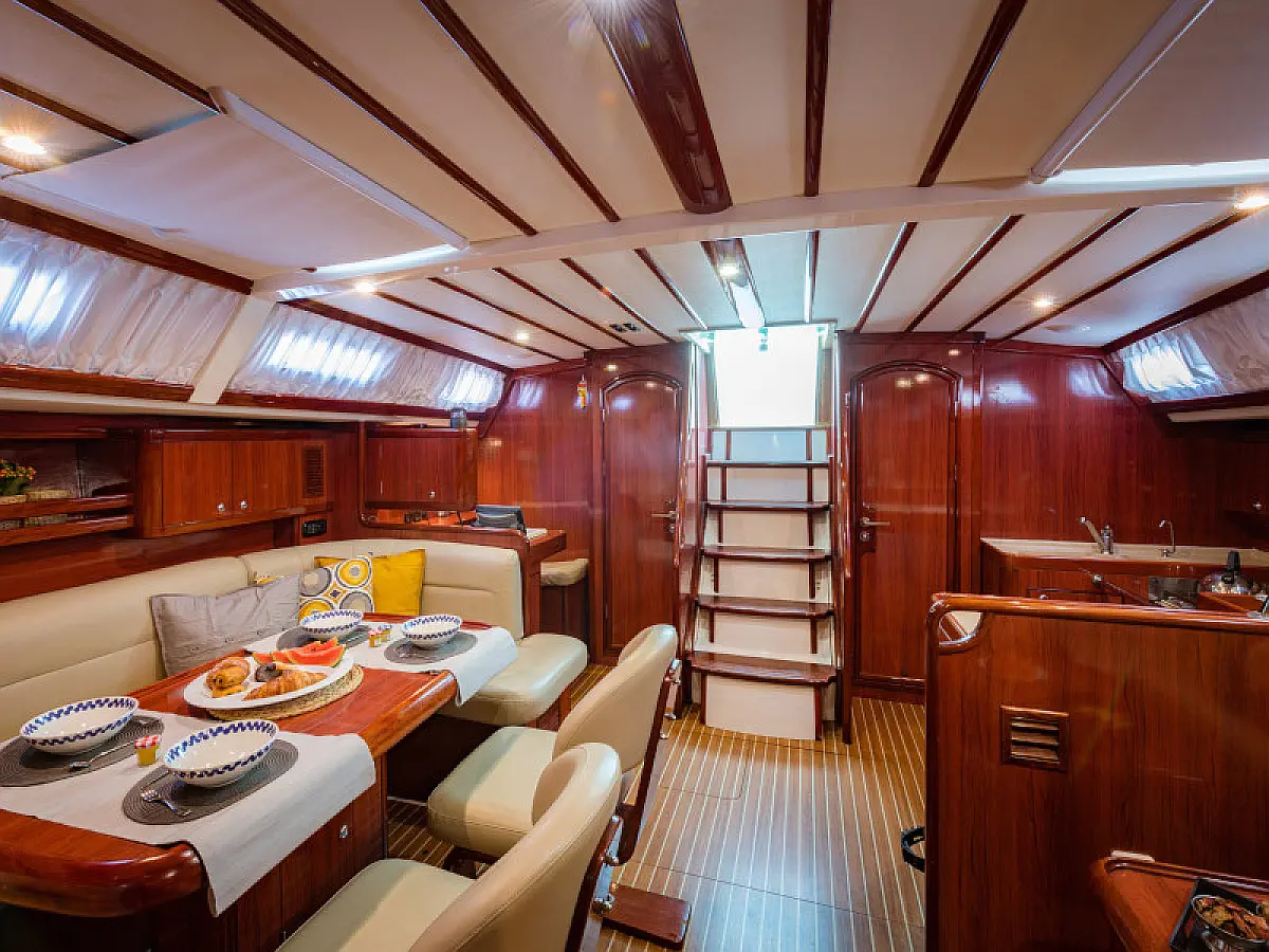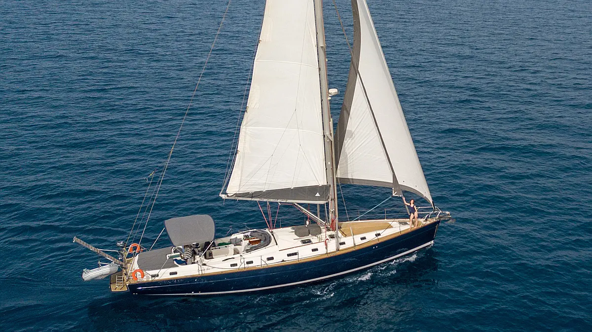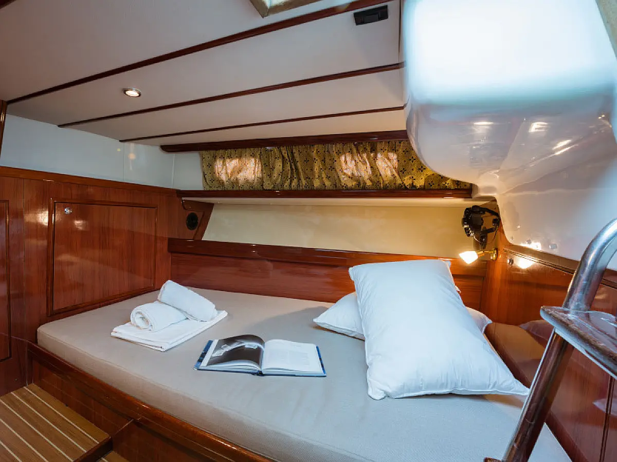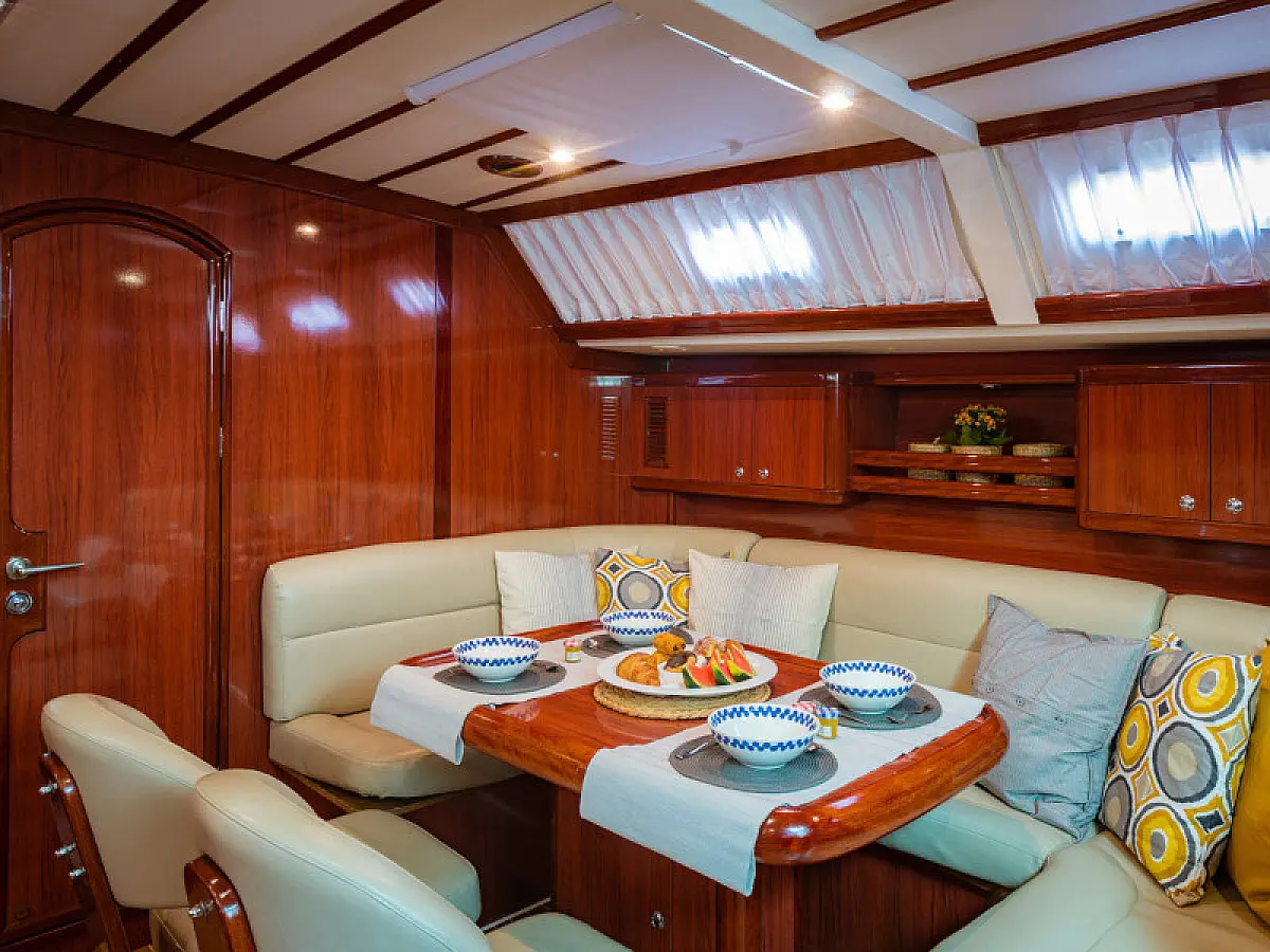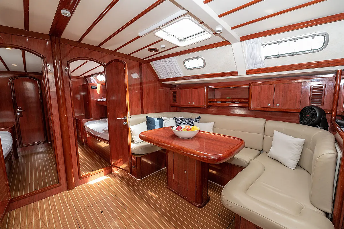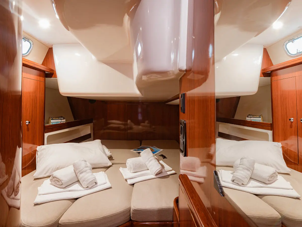 Generator, Air condition, Teak deck, Ice maker, Sprayhood, Refrigerator, Cockpit speakers, Dinghy, Bimini, Outboard engine, Water maker