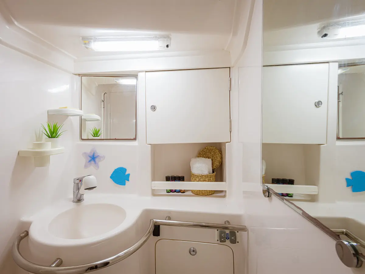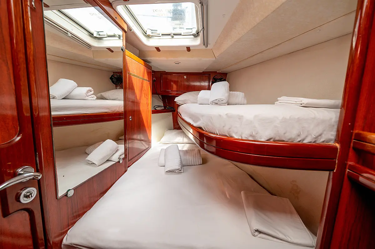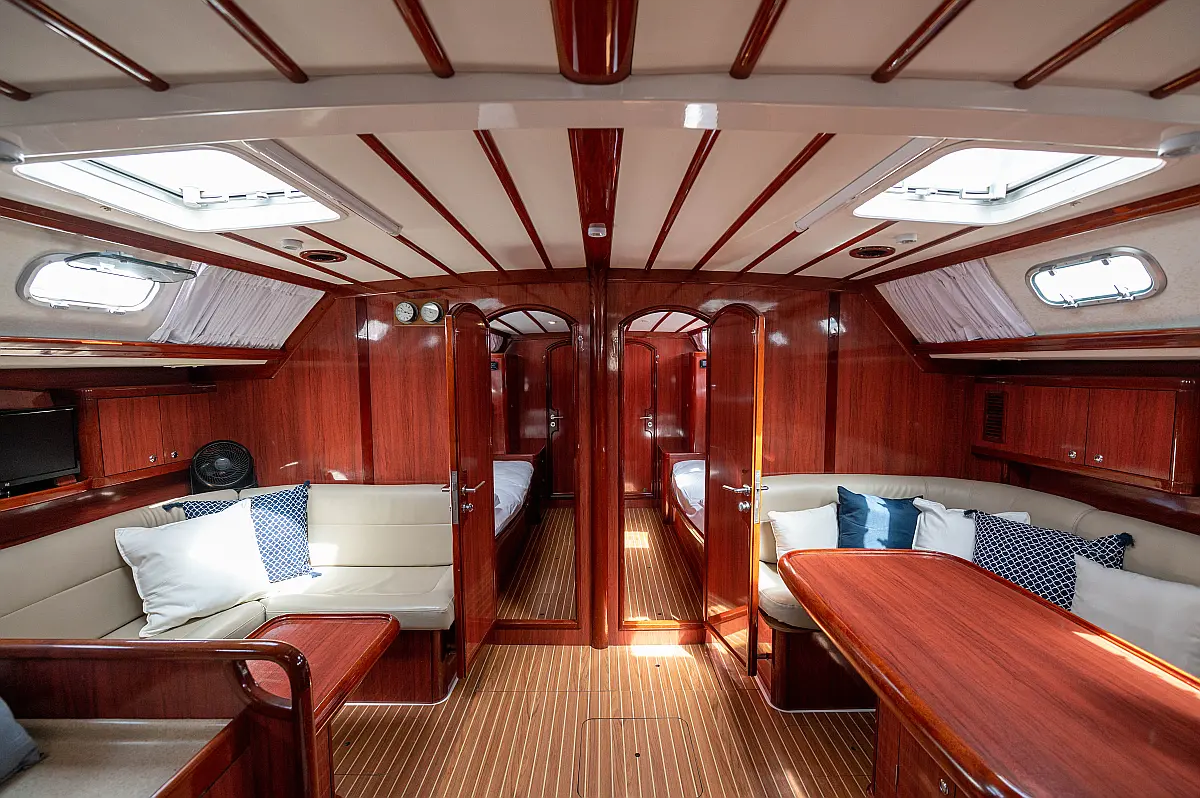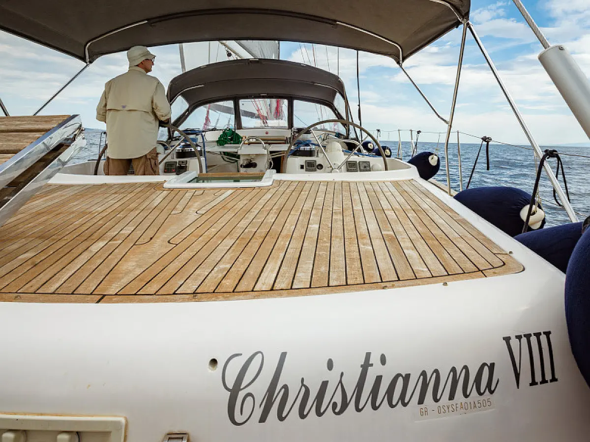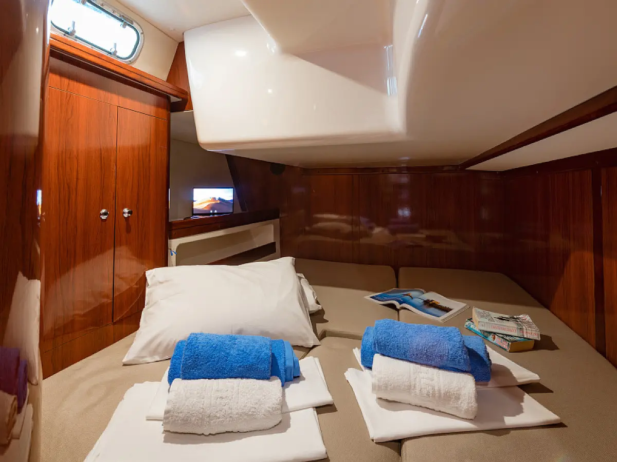 Generator, Air condition, Teak deck, Ice maker, Sprayhood, Refrigerator, Cockpit speakers, Dinghy, Bimini, Outboard engine, Water maker