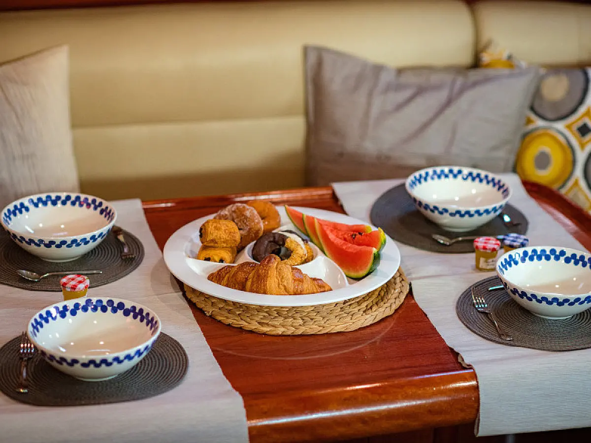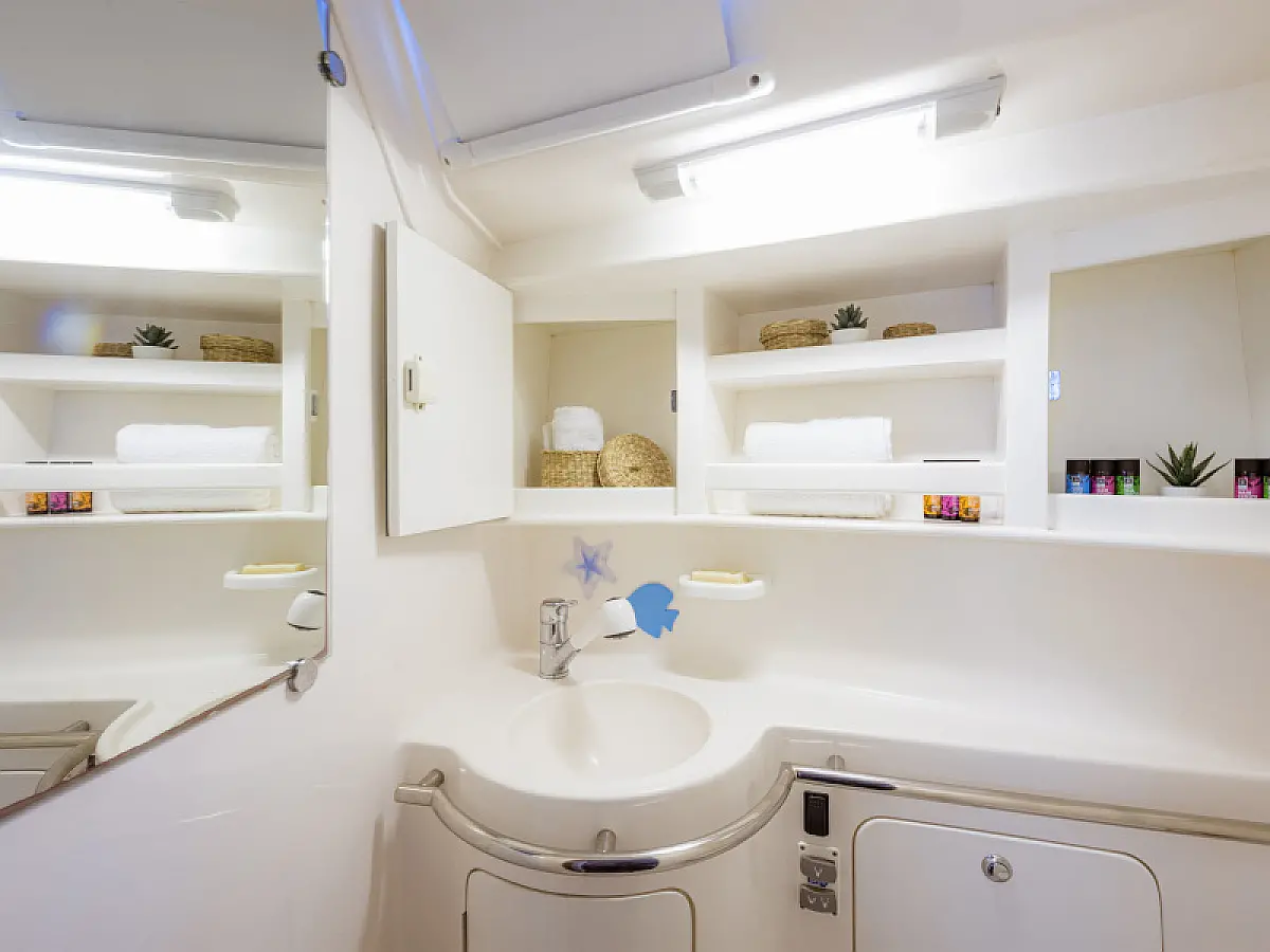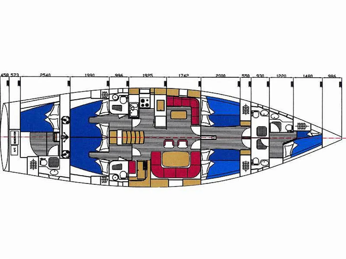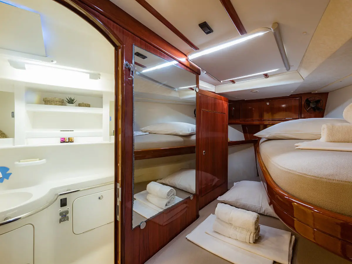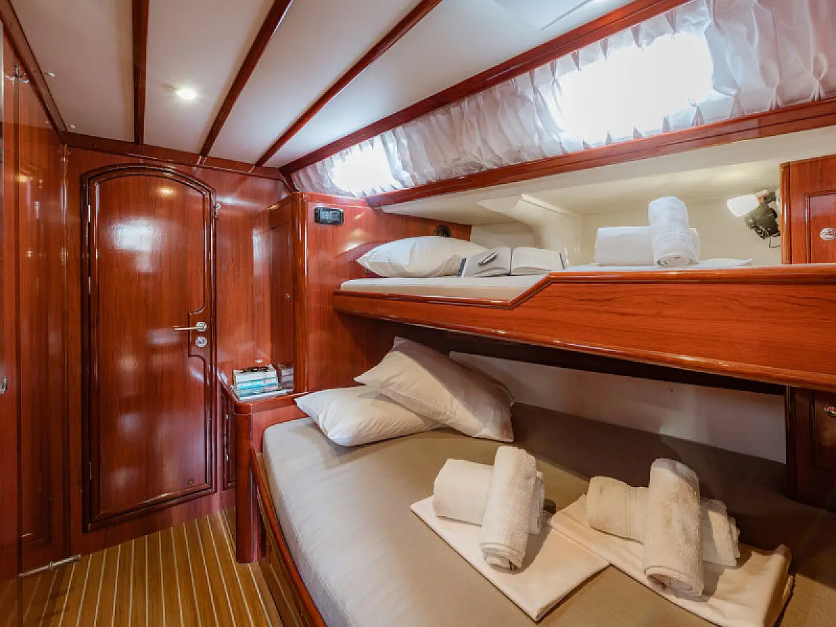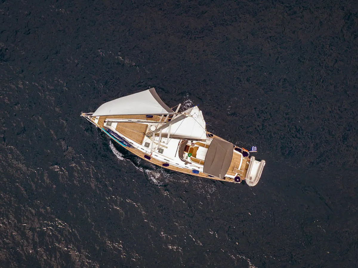 Generator, Air condition, Teak deck, Ice maker, Sprayhood, Refrigerator, Cockpit speakers, Dinghy, Bimini, Outboard engine, Water maker