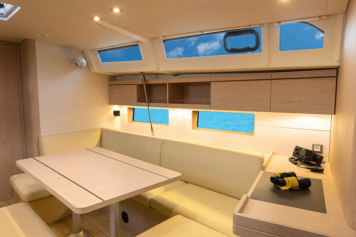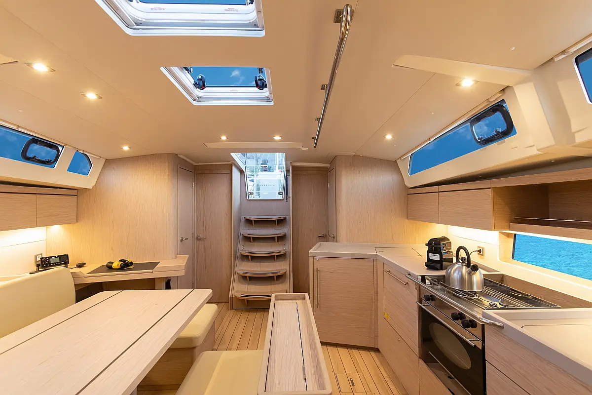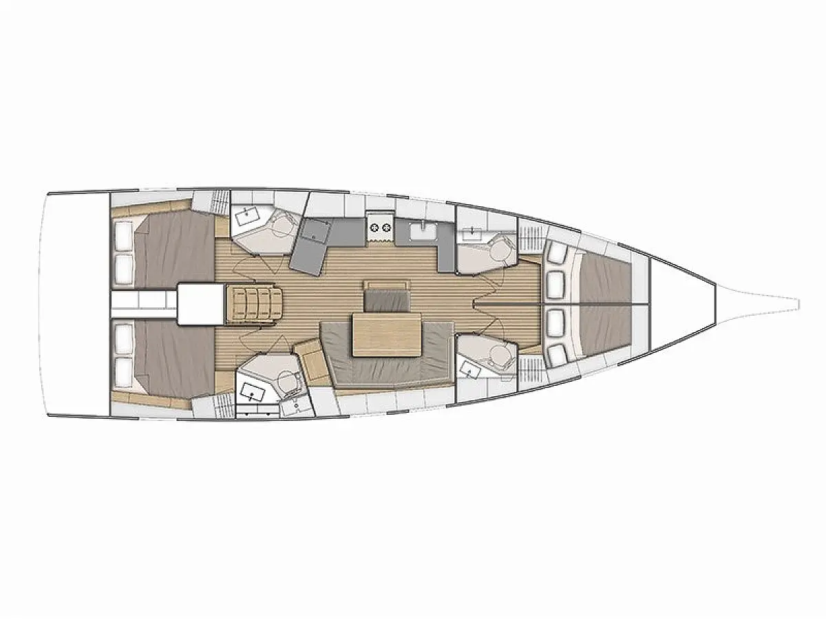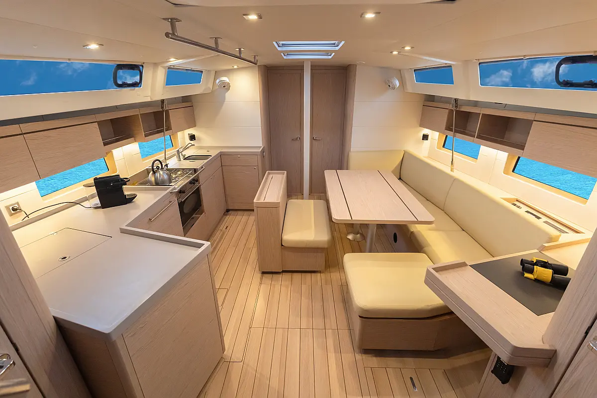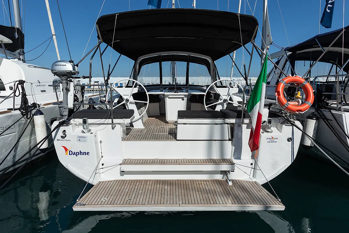 Dinghy, Outboard engine, Cockpit cushions, Electric winches, Barbecue grill in cockpit, Coffee maker, Teak deck, Electric toilet, Refrigerator