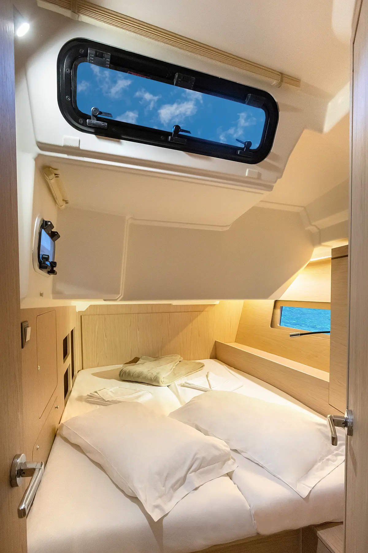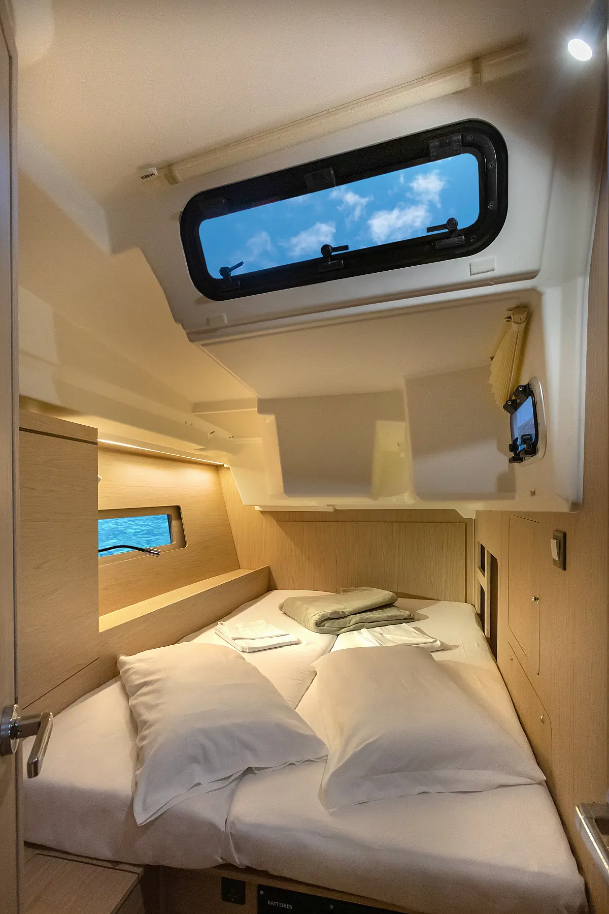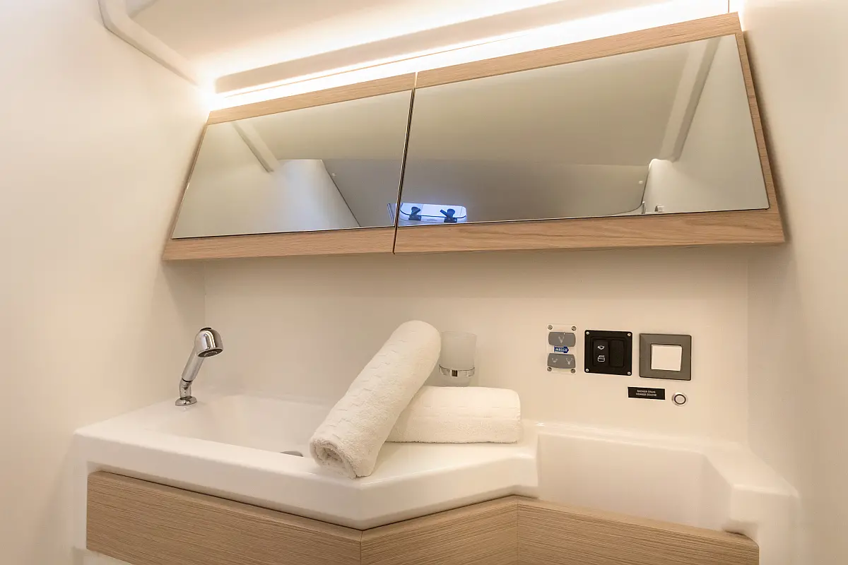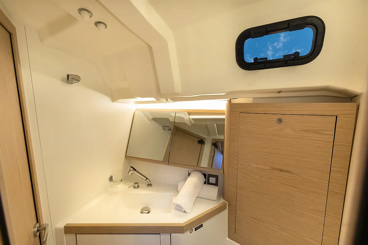 Dinghy, Outboard engine, Cockpit cushions, Electric winches, Barbecue grill in cockpit, Coffee maker, Teak deck, Electric toilet, Refrigerator