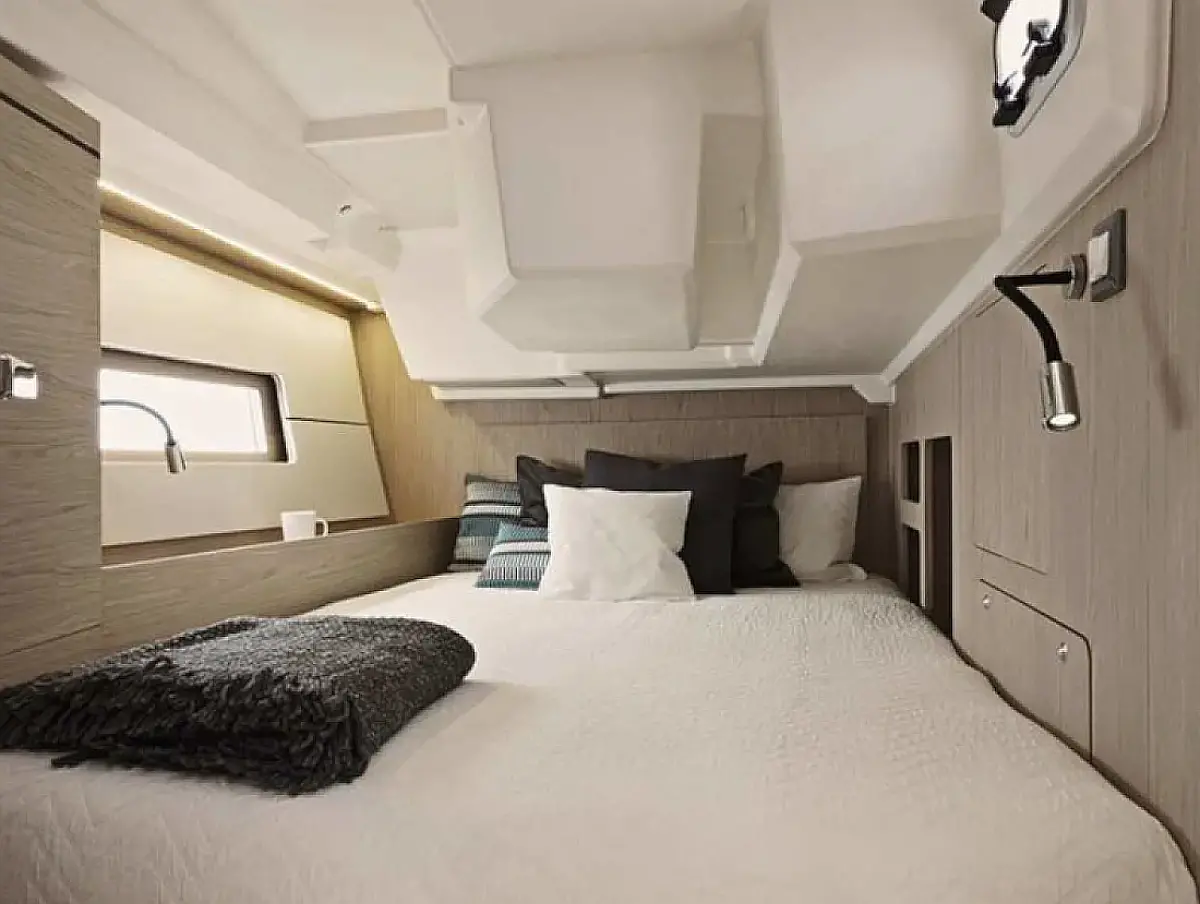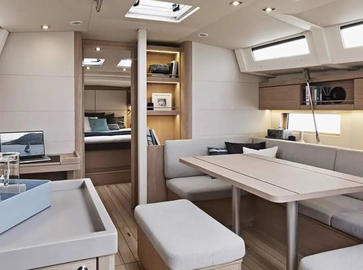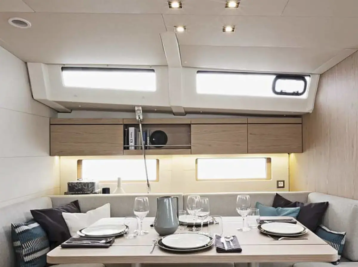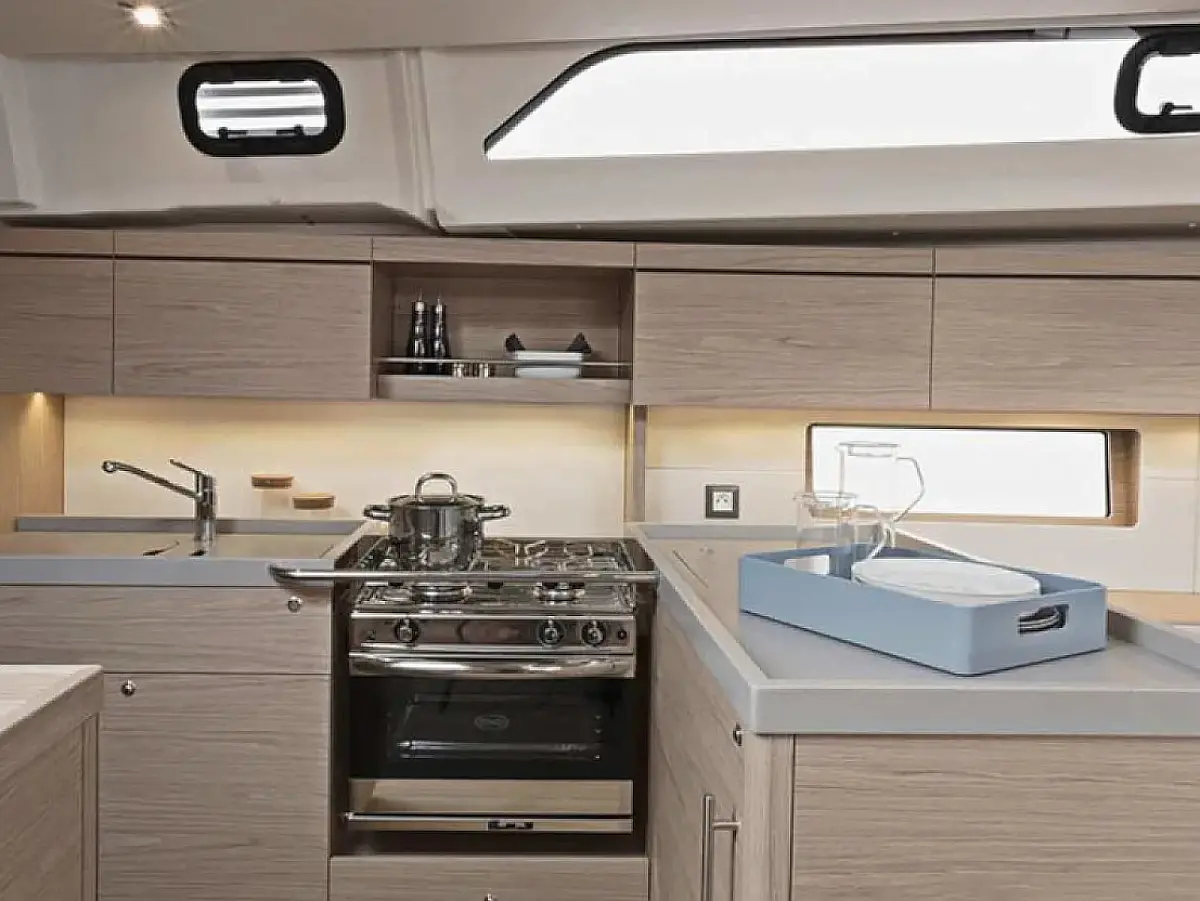 Refrigerator, Coffee maker, Cockpit speakers, Cockpit cushions, Dinghy, Bimini, Sprayhood