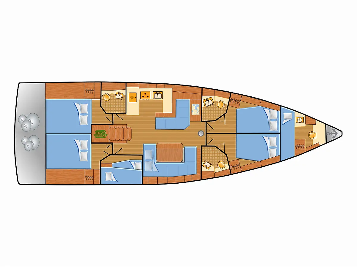 Heating, Wi-Fi & Internet, Bimini, Dinghy, Holding tank, Sprayhood