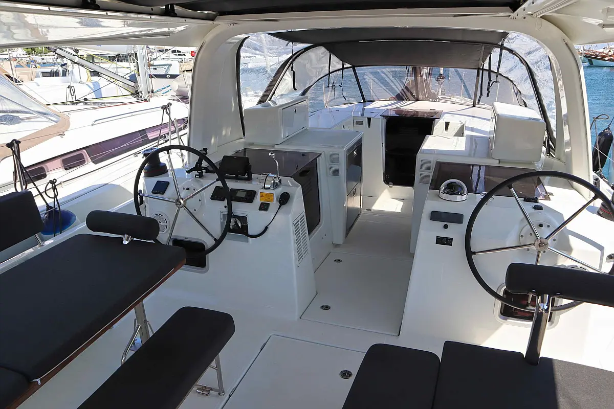 Sprayhood, Bimini, Cockpit cushions, Solar Panels, Generator, Air condition, Swimming platform, Dinghy, Electric toilet