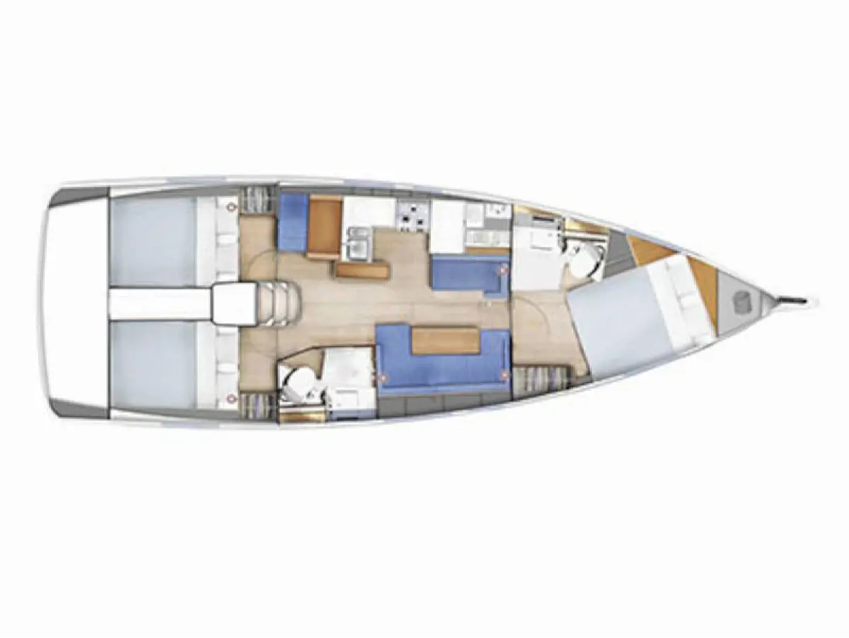 Sprayhood, Bimini, Cockpit cushions, Electric toilet, Dinghy, Refrigerator, Electric winches