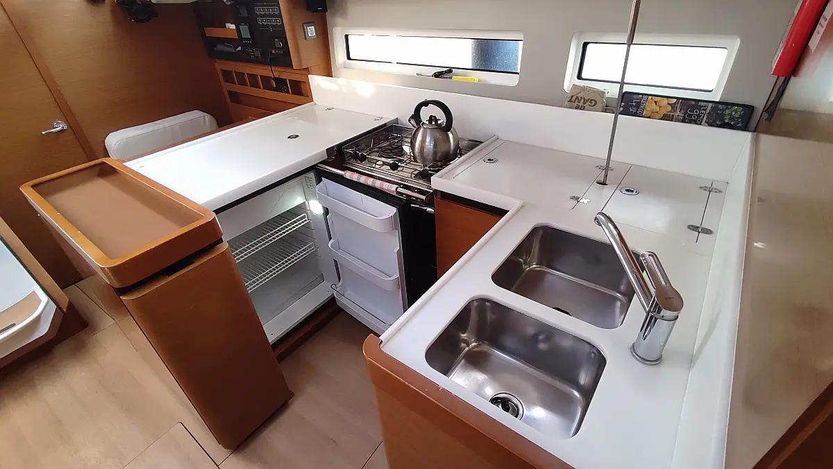 Cockpit speakers, Cockpit cushions, Refrigerator, Teak Cockpit, Swimming platform, Holding tank, Sprayhood, Dinghy, Bimini, Electric winches, Solar Panels, Inverter