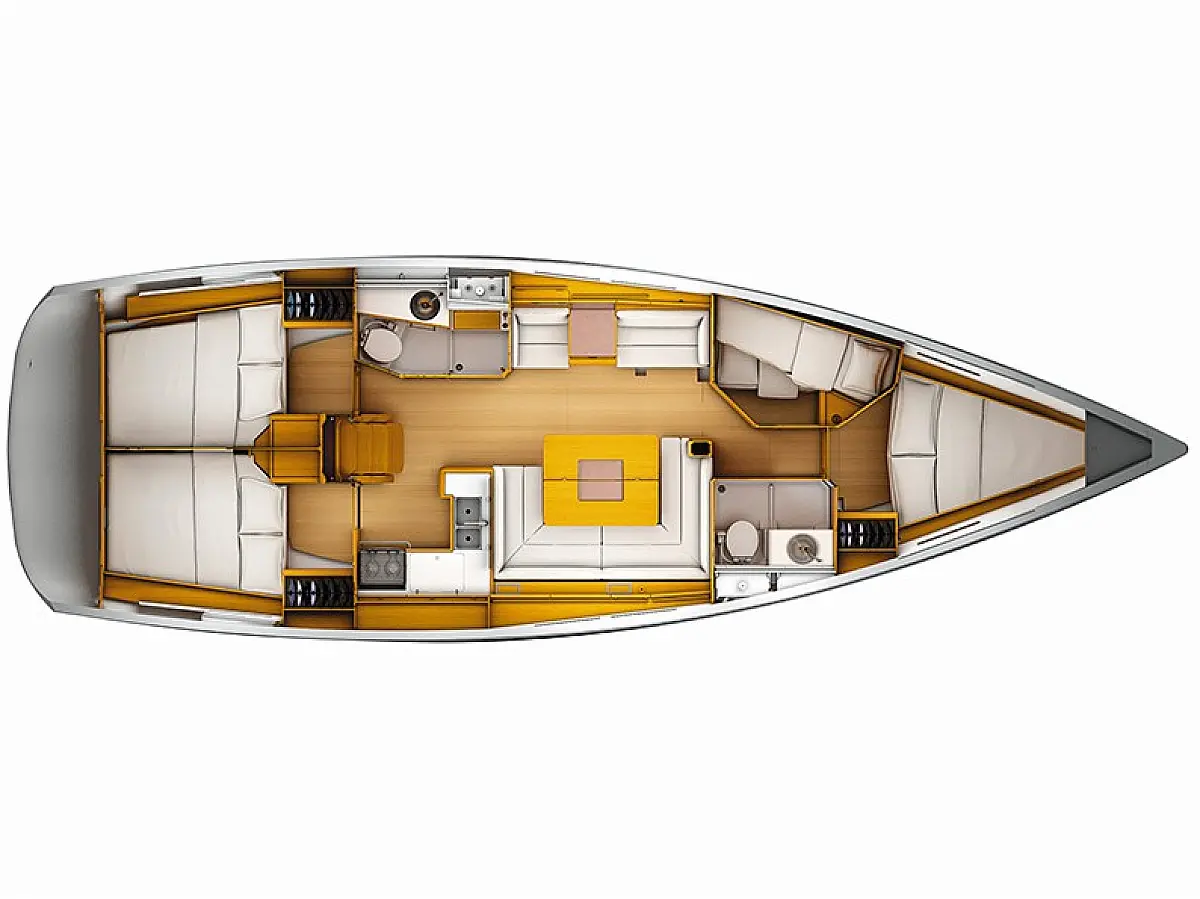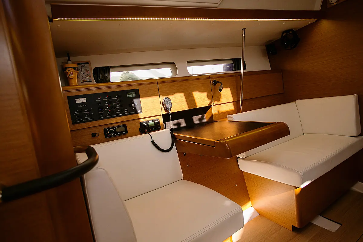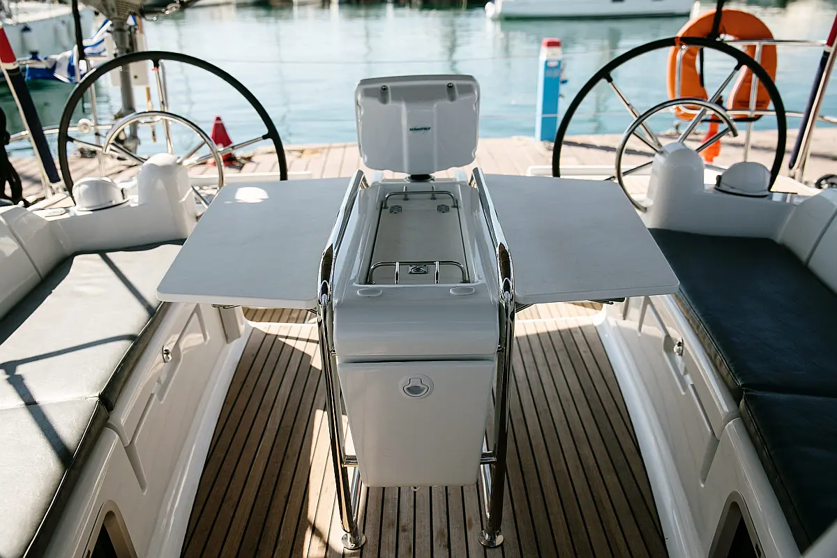 Cockpit speakers, Teak Cockpit, Sprayhood, Bimini, Cockpit cushions, Swimming platform, Convertible table