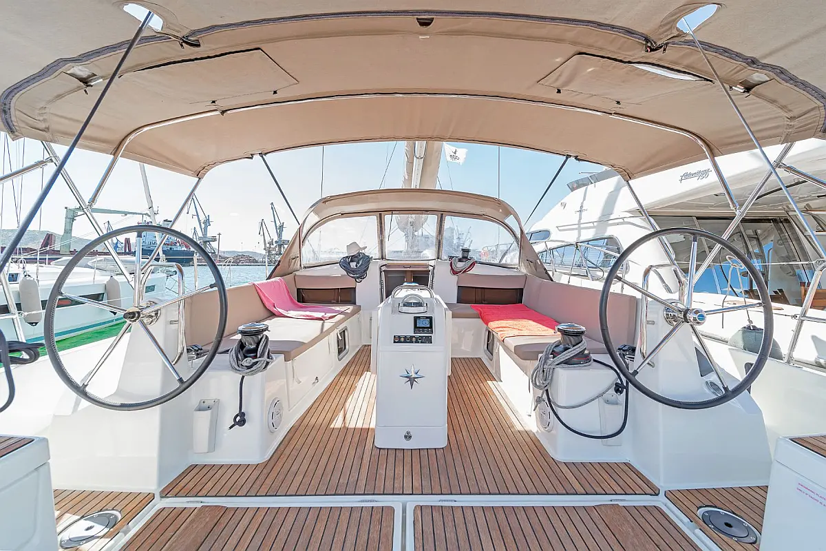 Cockpit speakers, Solar Panels, Electric toilet, Teak Cockpit, Coffee maker, Dinghy, Sprayhood, Bimini