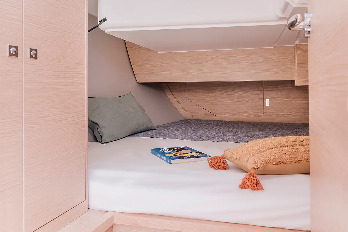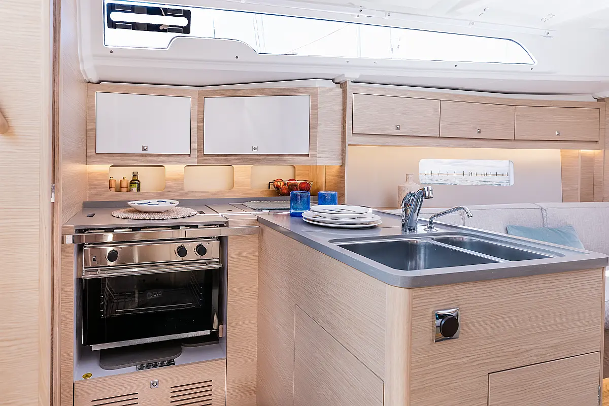 Refrigerator, Electric toilet, Air condition, Generator, Outboard engine, Bimini, Cockpit cushions, Inverter, Solar Panels, Water maker