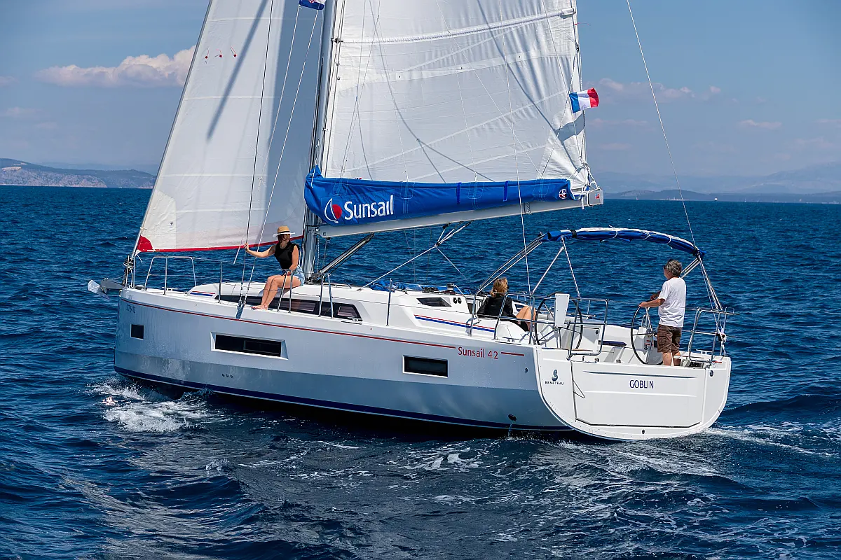 Refrigerator, Coffee maker, Bimini, Cockpit speakers, Cockpit cushions, Dinghy