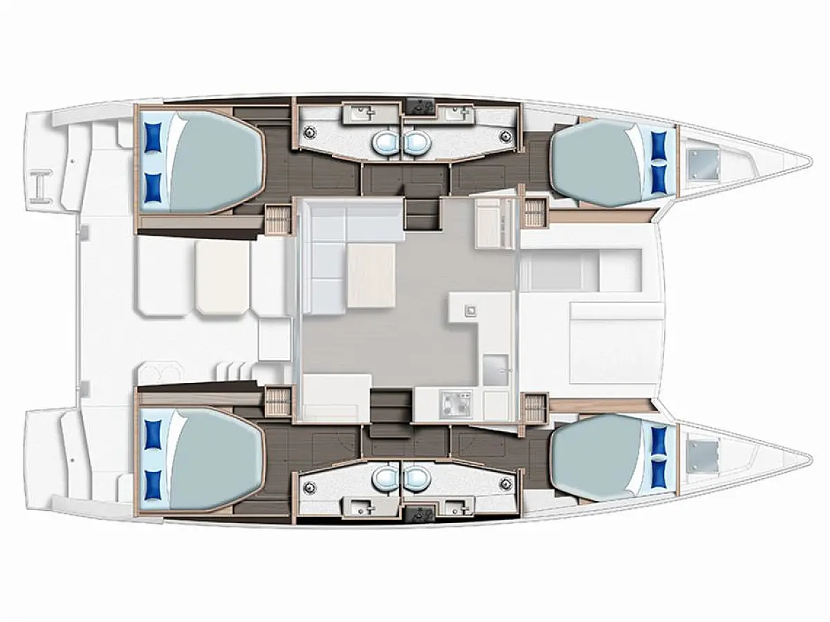Electric toilet, Air condition, Electric winches, Refrigerator, Cockpit cushions, Inverter, Generator, Solar Panels, Water maker