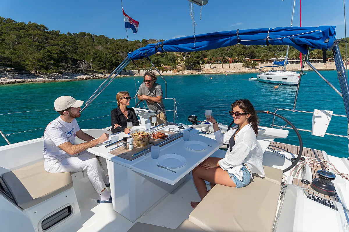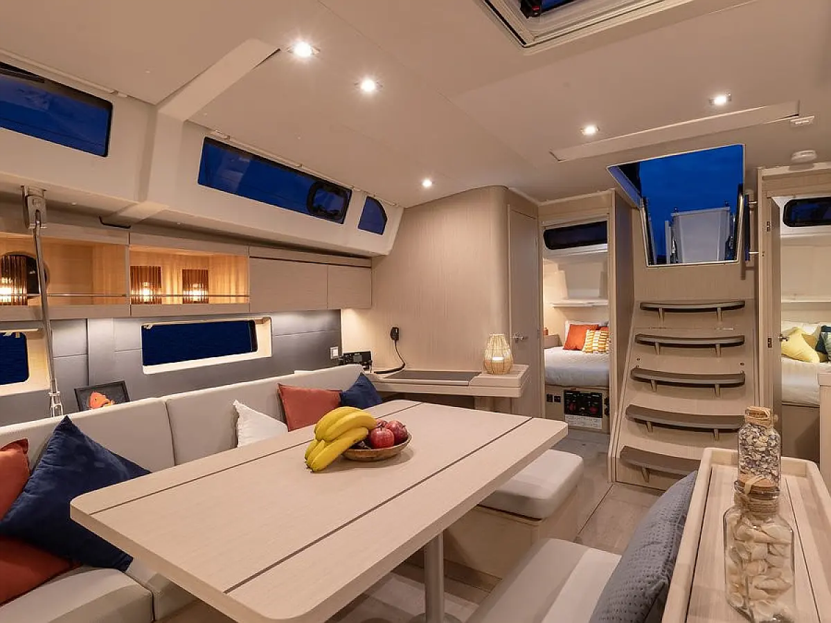 Refrigerator, Coffee maker, Cockpit speakers, Cockpit cushions, Dinghy, Bimini, Sprayhood