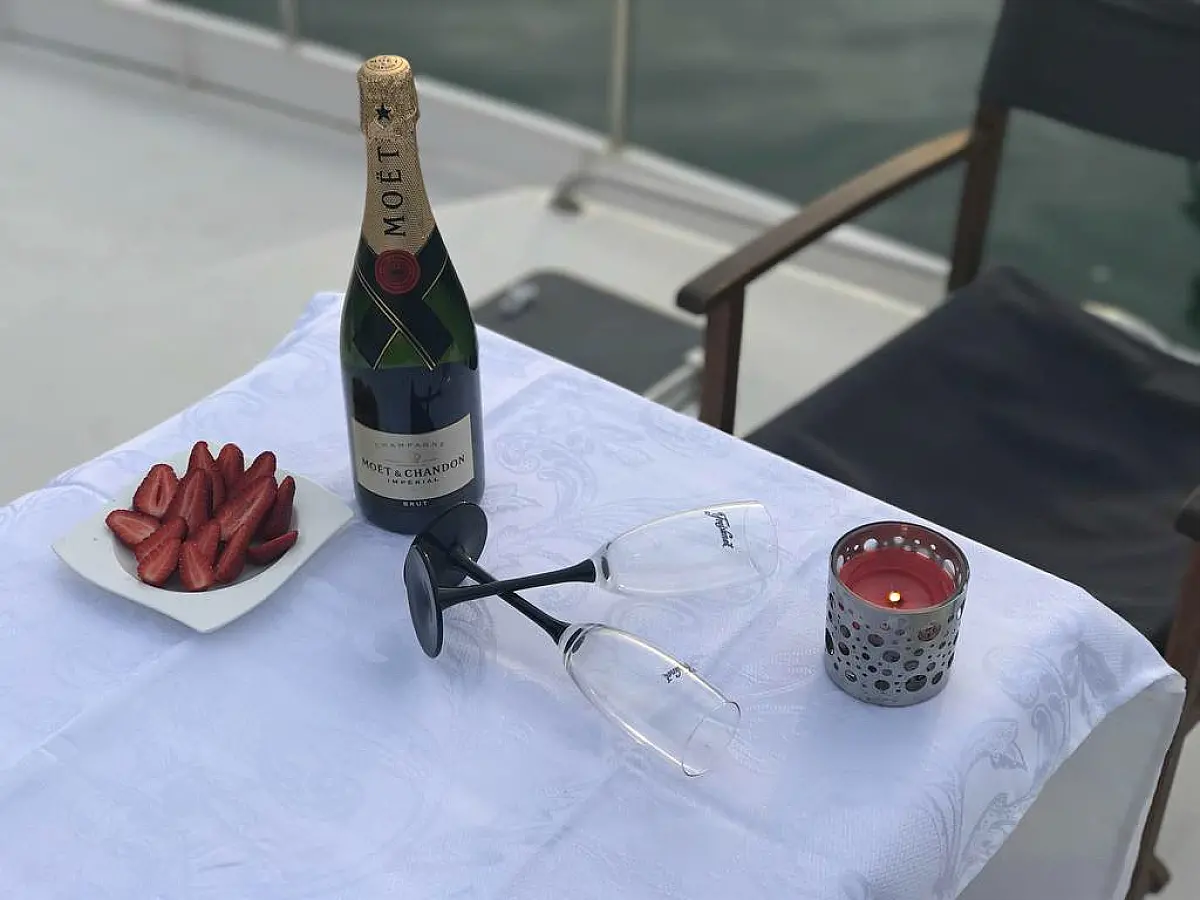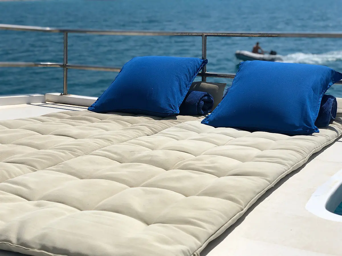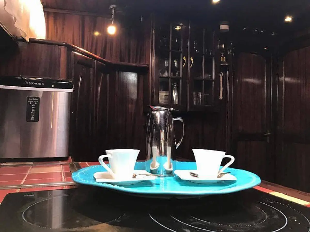 Coffee maker, Cockpit speakers, Dinghy, Outboard engine, Air condition