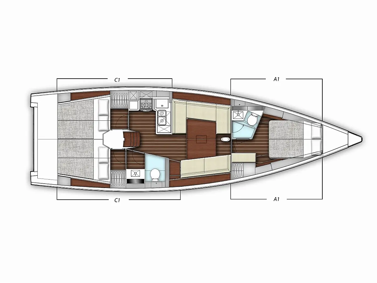 Dinghy, Bimini, Electric winches, Cockpit speakers, Wi-Fi & Internet, Heating, Cockpit cushions, Teak Cockpit, Sprayhood, Coffee maker, Refrigerator, Solar Panels, Inverter