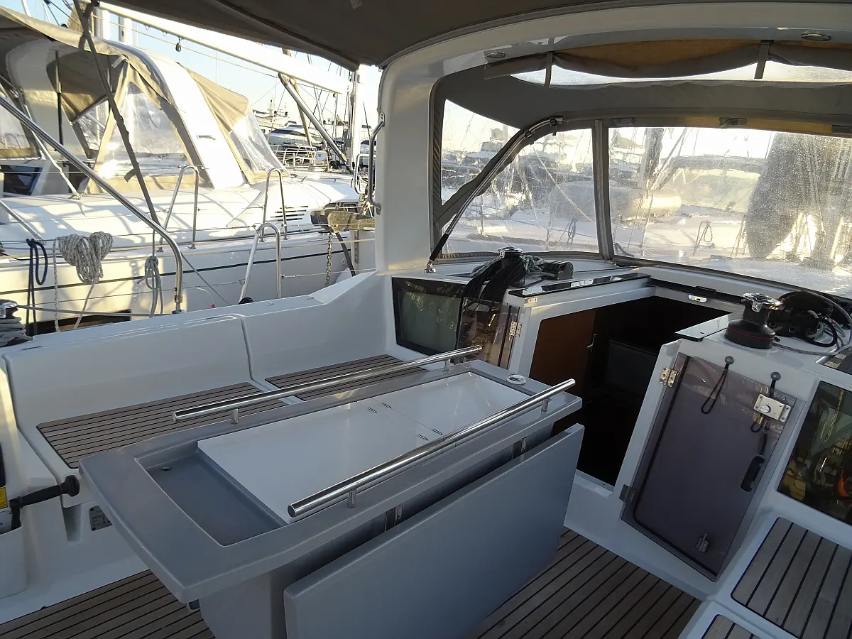 Bimini, Sprayhood, Cockpit speakers, Electric winches, Teak Cockpit, Hydraulic gangway, Solar Panels, Dinghy