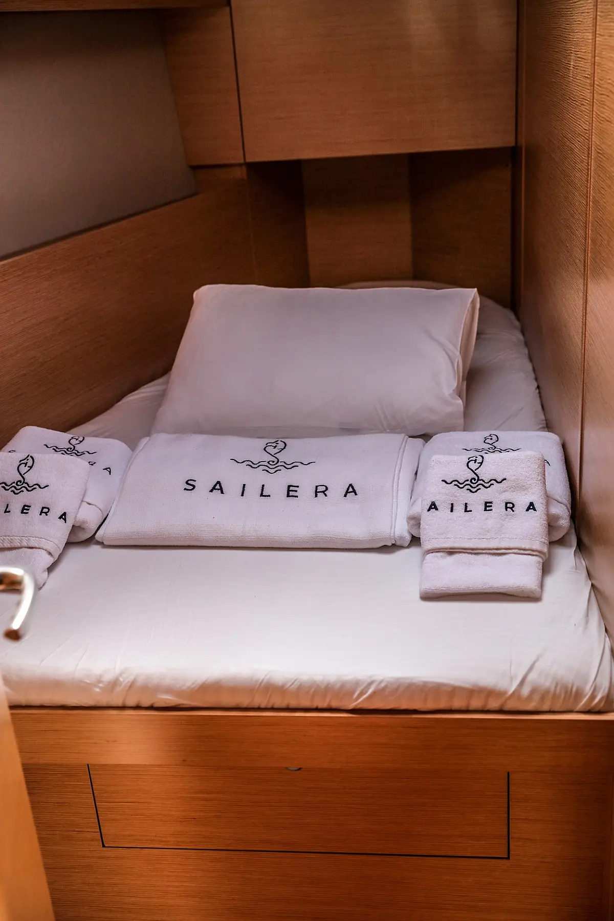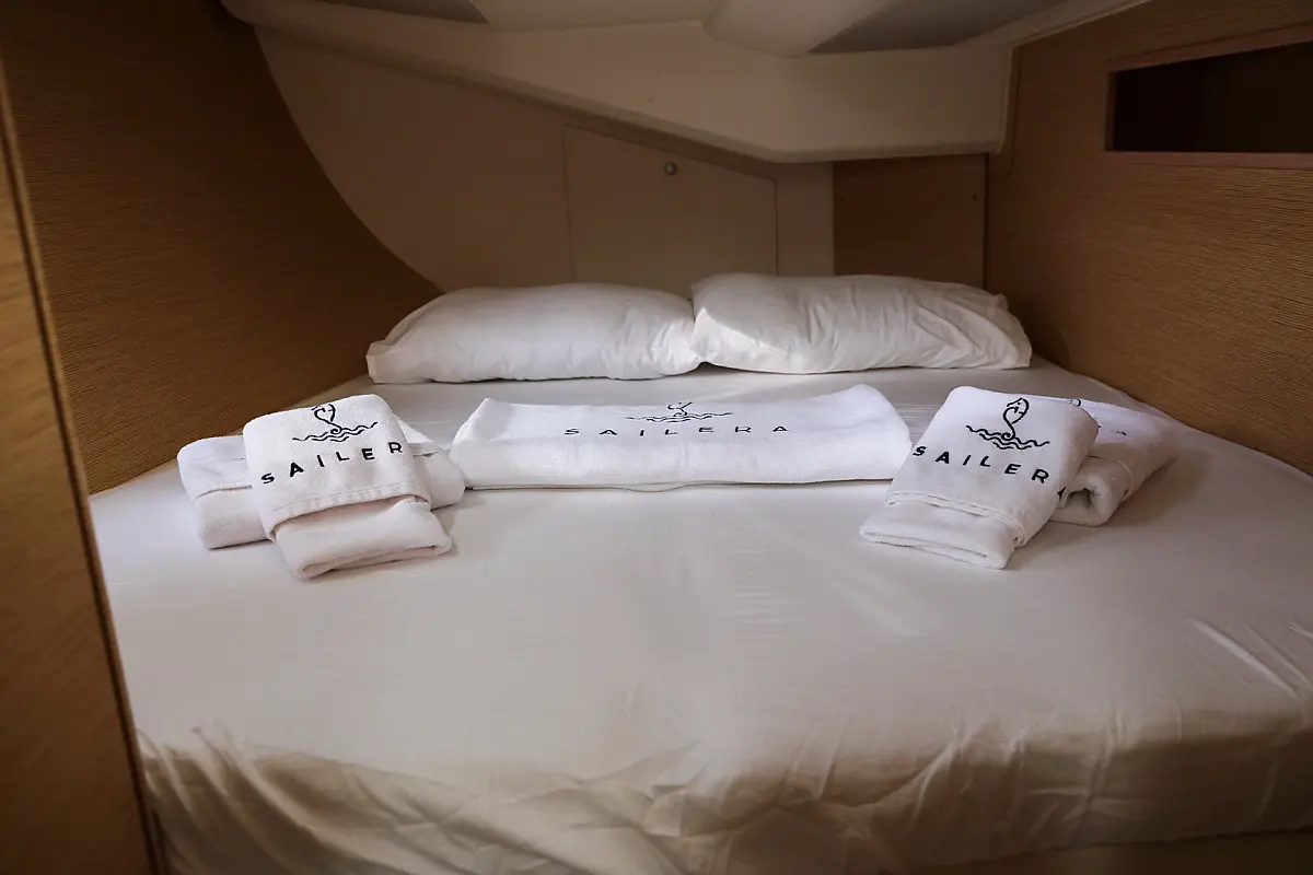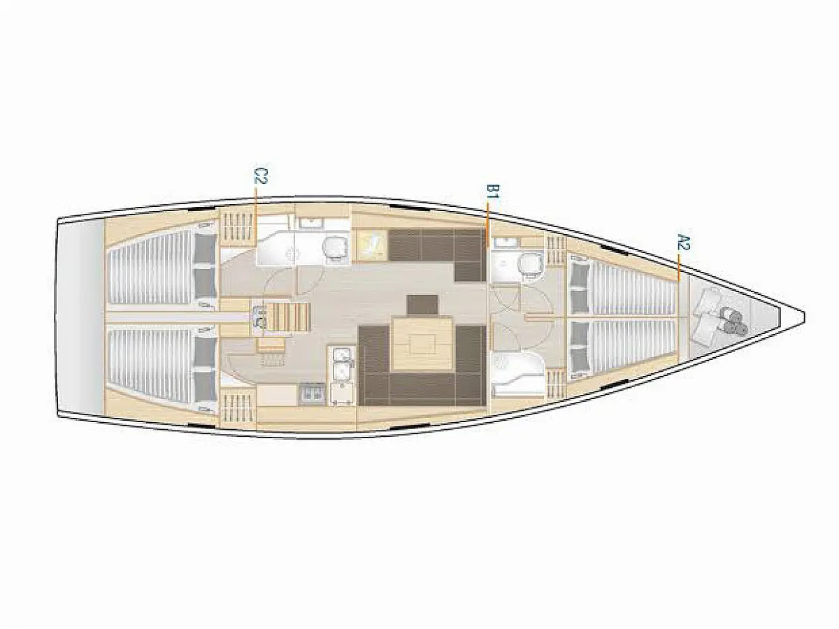46 ft Length 4 Cabins 8 Max Guests 2 Heads Technical Specifications Draught: 7 ft Engine: 57 hp Water capacity: 450.00 l Main sail: Full batten Displacement: 12.10 kg Fuel capacity: 210.00 l Beam: 14 ft Genoa: Self tacking jib Equipment Comfort: Cockpit speakers, Sprayhood, Dinghy, Cockpit cushions, Refrigerator Documents Download Brochure Download Brochure