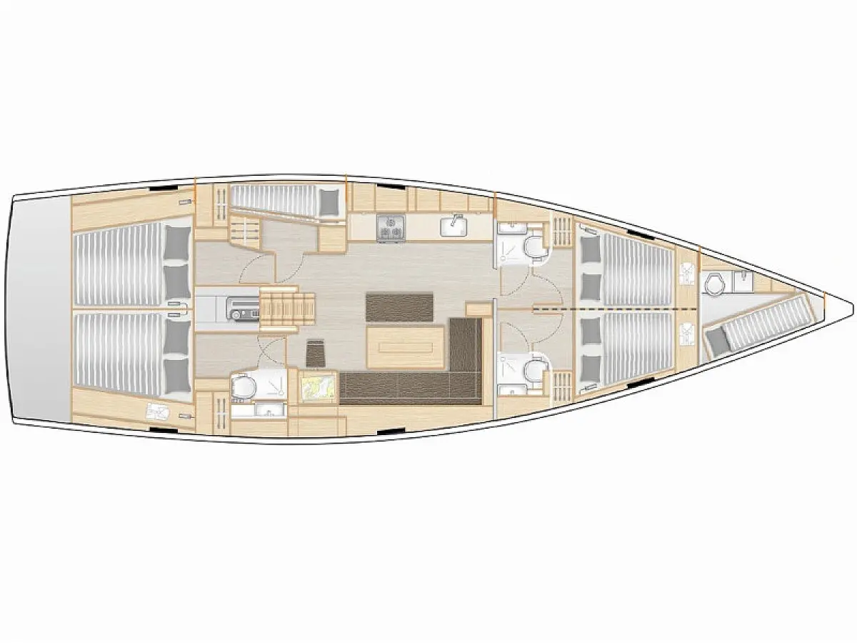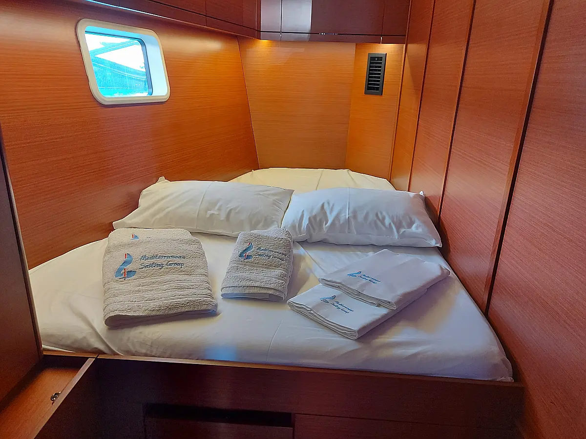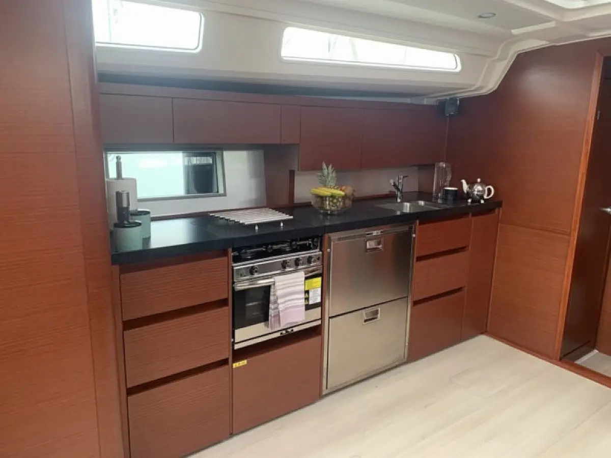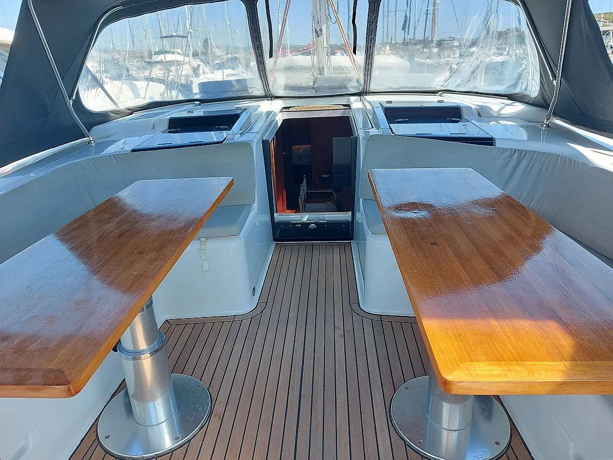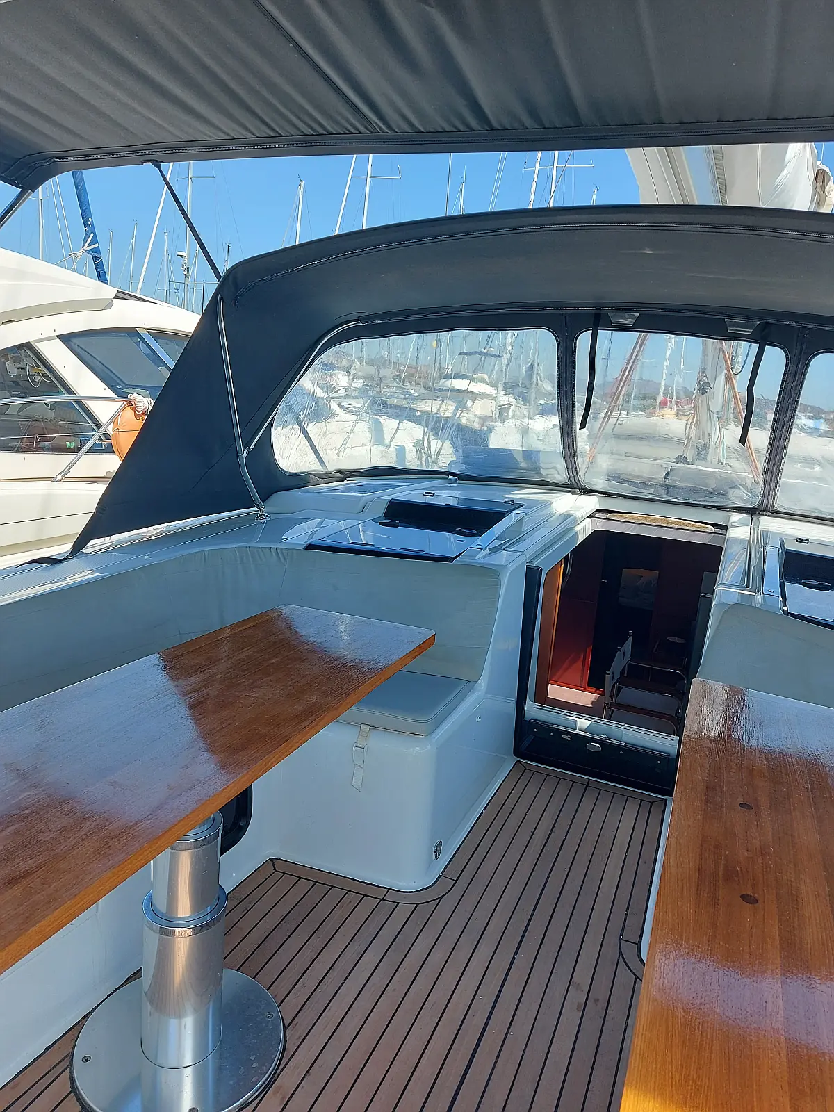 Bimini, Teak Cockpit, Outboard engine, Refrigerator, Air condition, Generator, Coffee maker, Sprayhood, Dinghy, Electric toilet, Electric winches, Water maker, Cockpit cushions