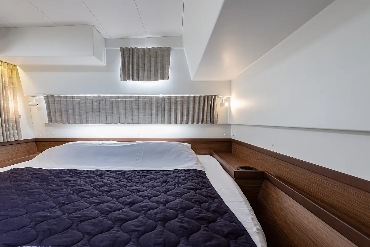 6 (4 double-bed cabins + 2 bow cabins)