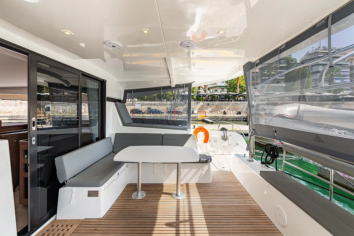 Holding tank, Cockpit speakers, Electric winches, Electric toilet, Air condition, Water maker, Generator, Cockpit cushions, Dinghy, Sprayhood, Swimming platform, Teak Cockpit, Bimini, Solar Panels