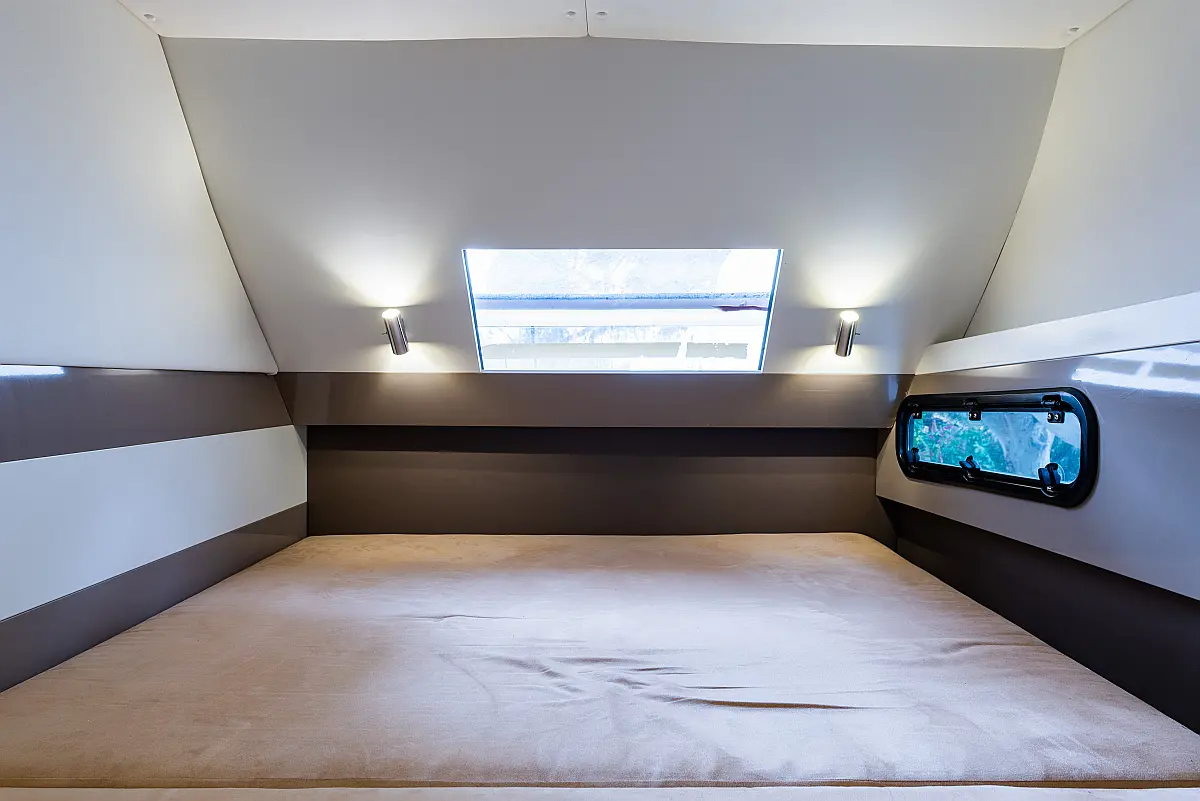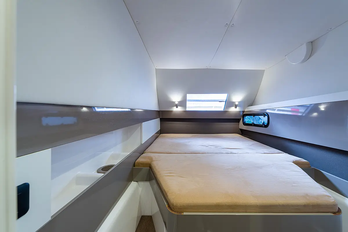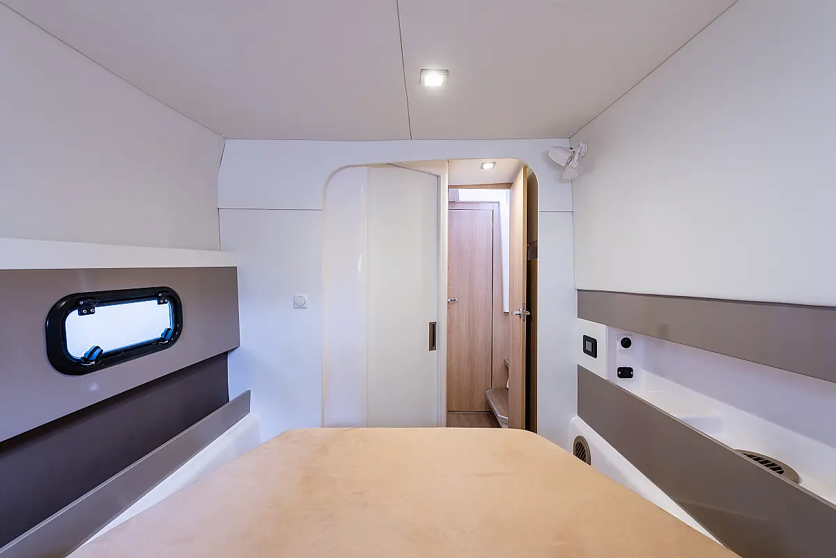 6 (4 double-bed cabins +2 bow cabins)