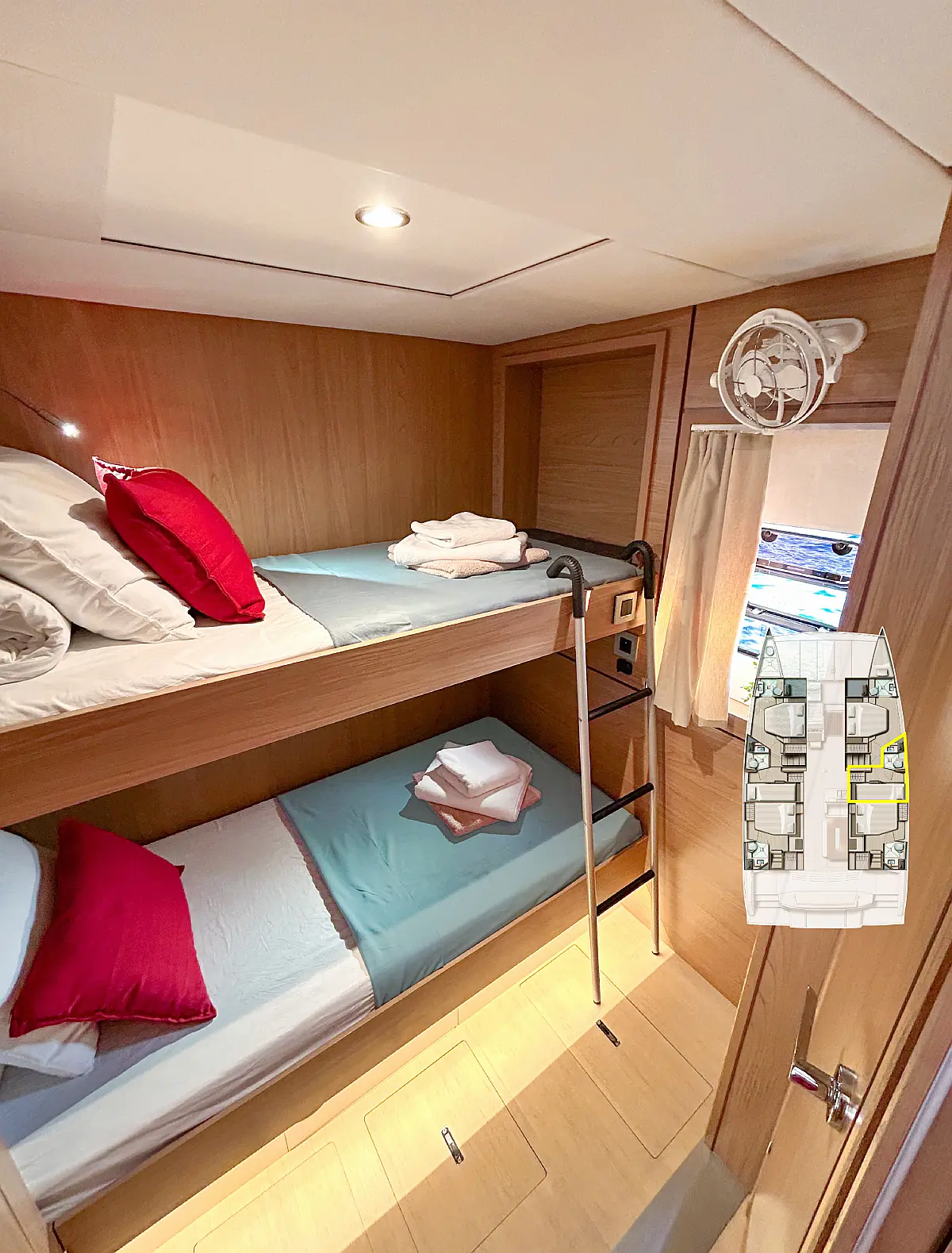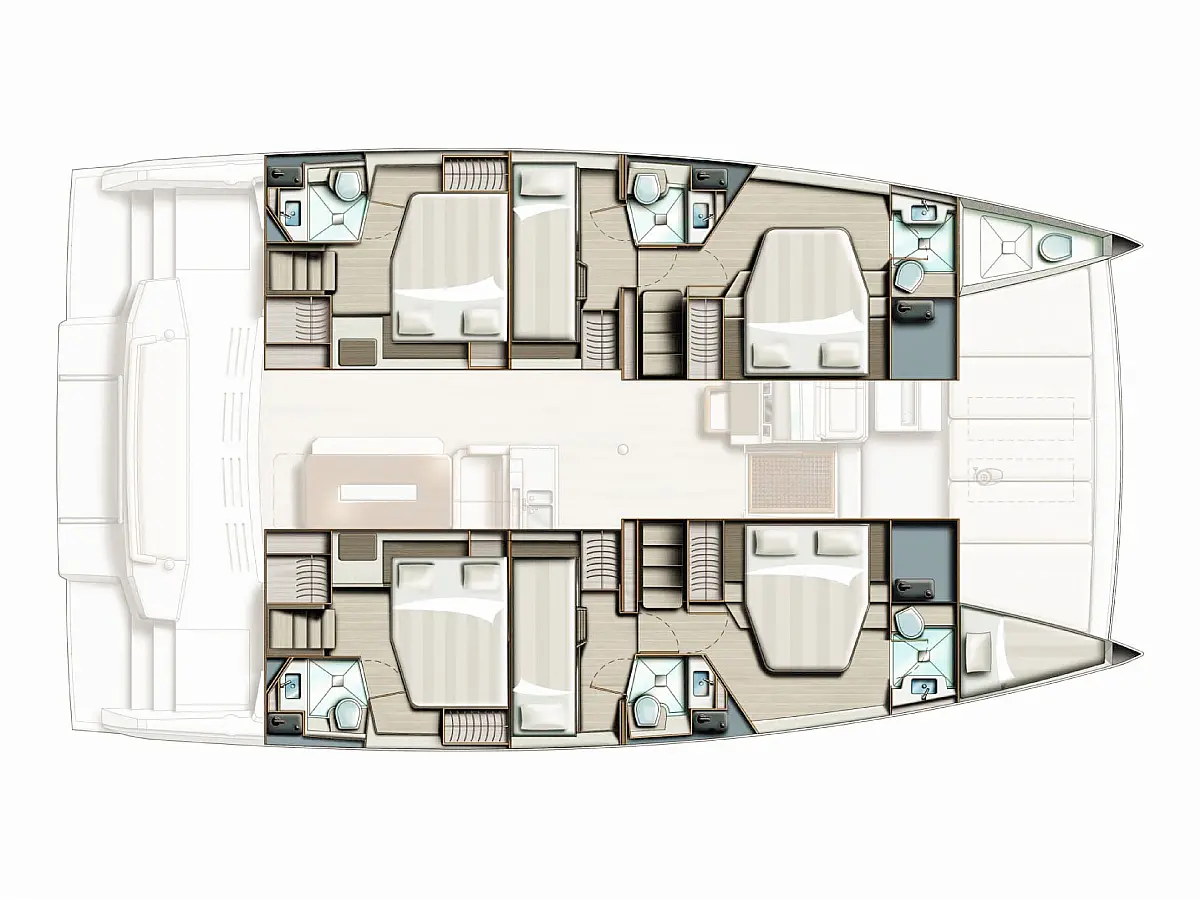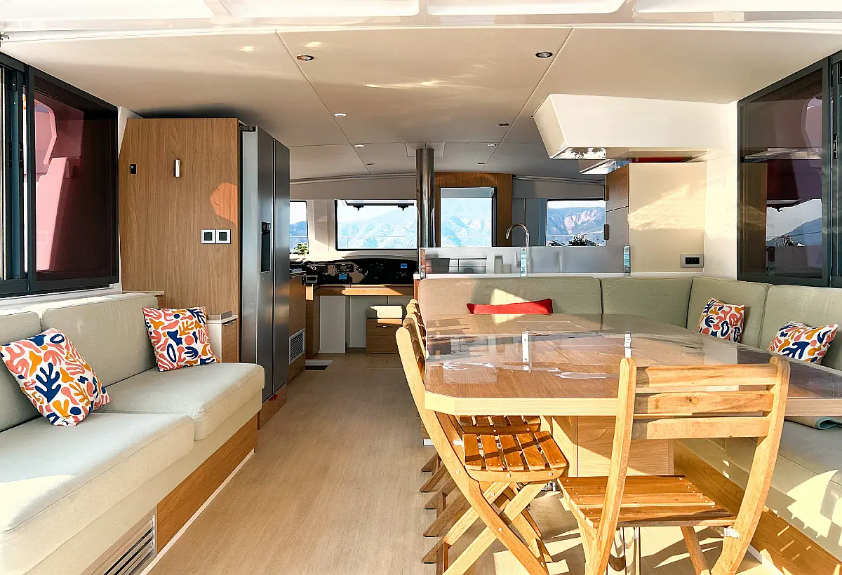 Generator, Dinghy, Outboard engine, Electric winches, Solar Panels, Inverter, Bimini, Cockpit cushions, Coffee maker, Air condition, Refrigerator, Barbecue grill in cockpit, Water maker, Heating, Ice maker, Electric toilet