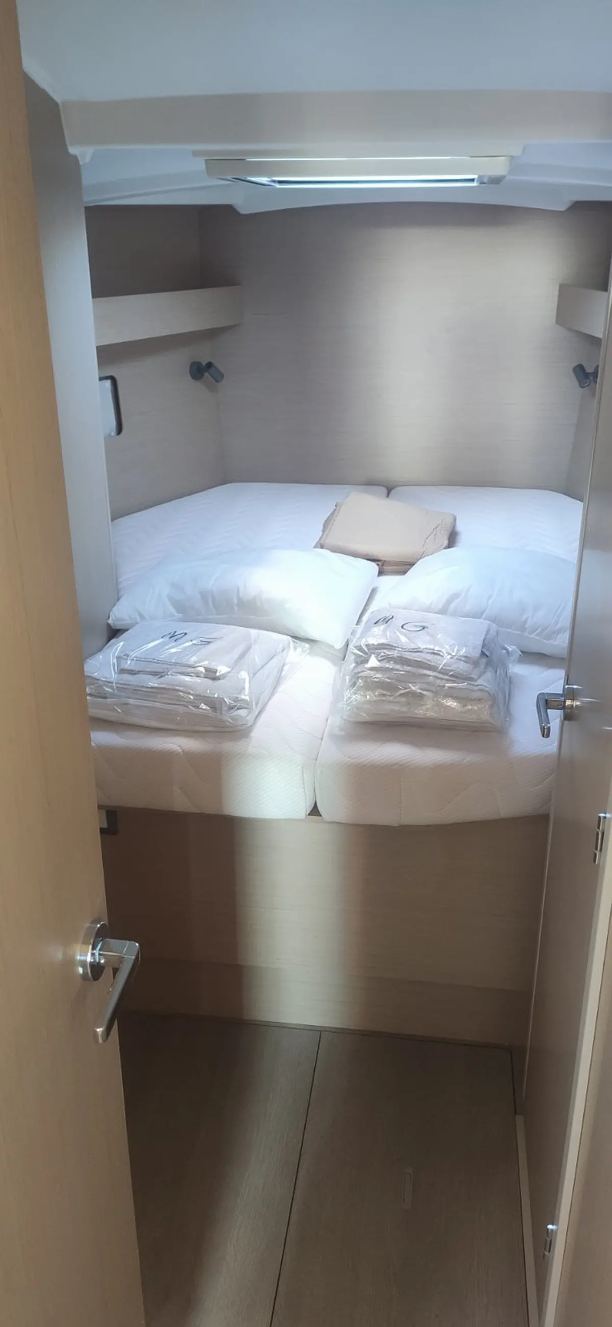 Cockpit speakers, Bimini, Refrigerator, Solar Panels, Dinghy, Electric toilet